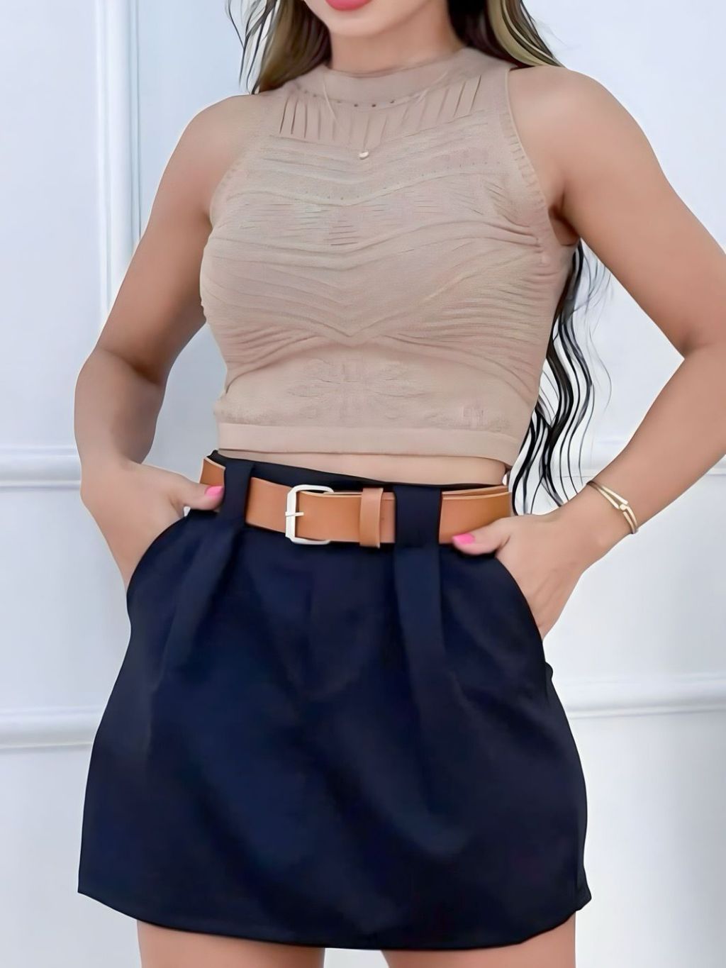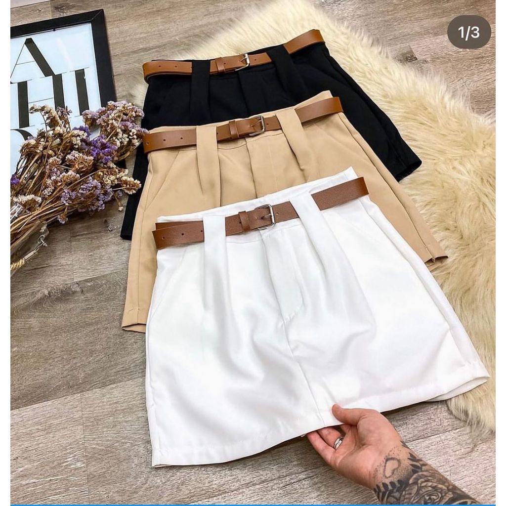 Shorts Saia Alfaiataria Com Cinto Short Saia Social Cintura Alta Premium Soltinho Elegante Tendencia