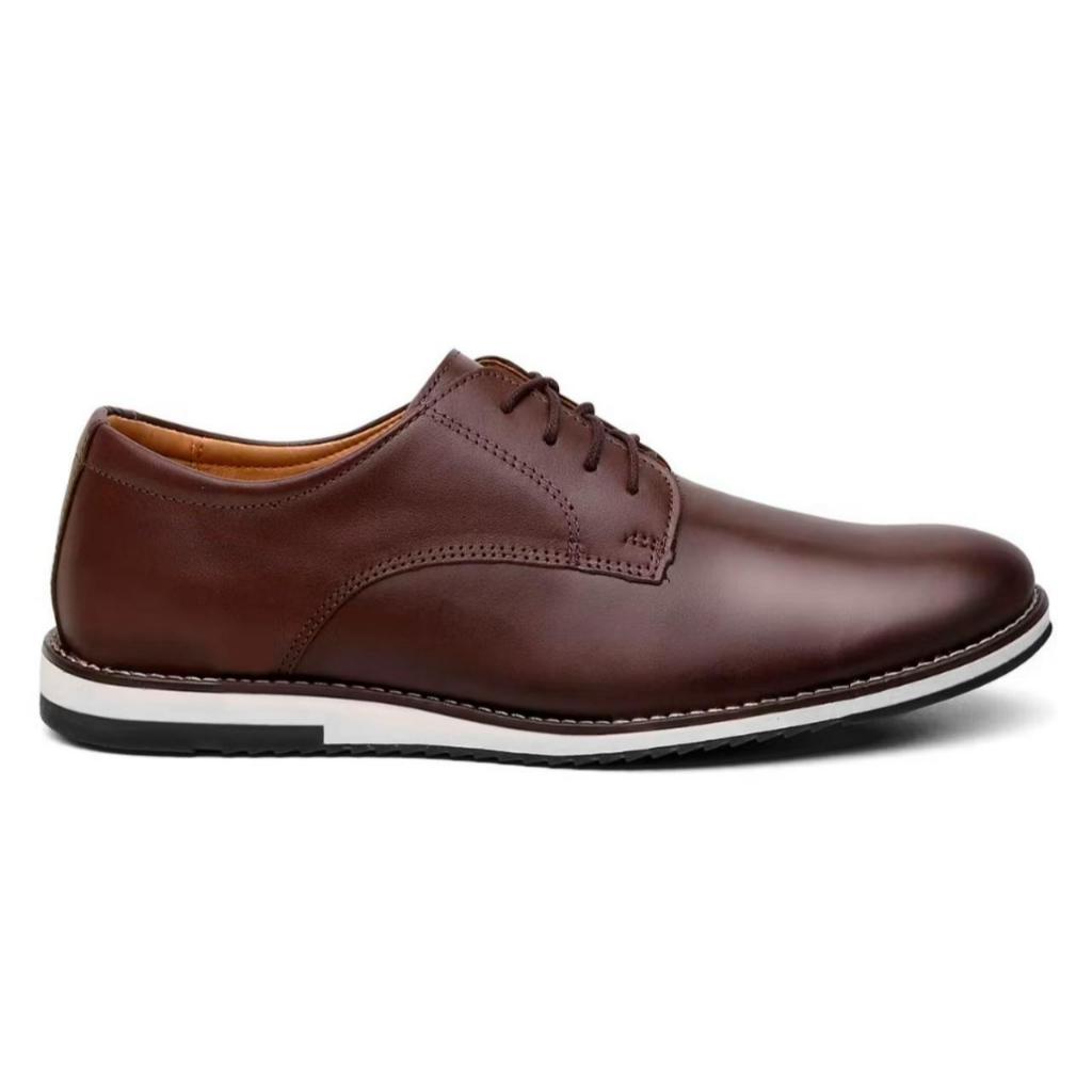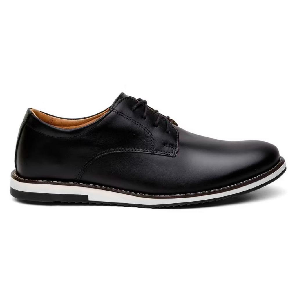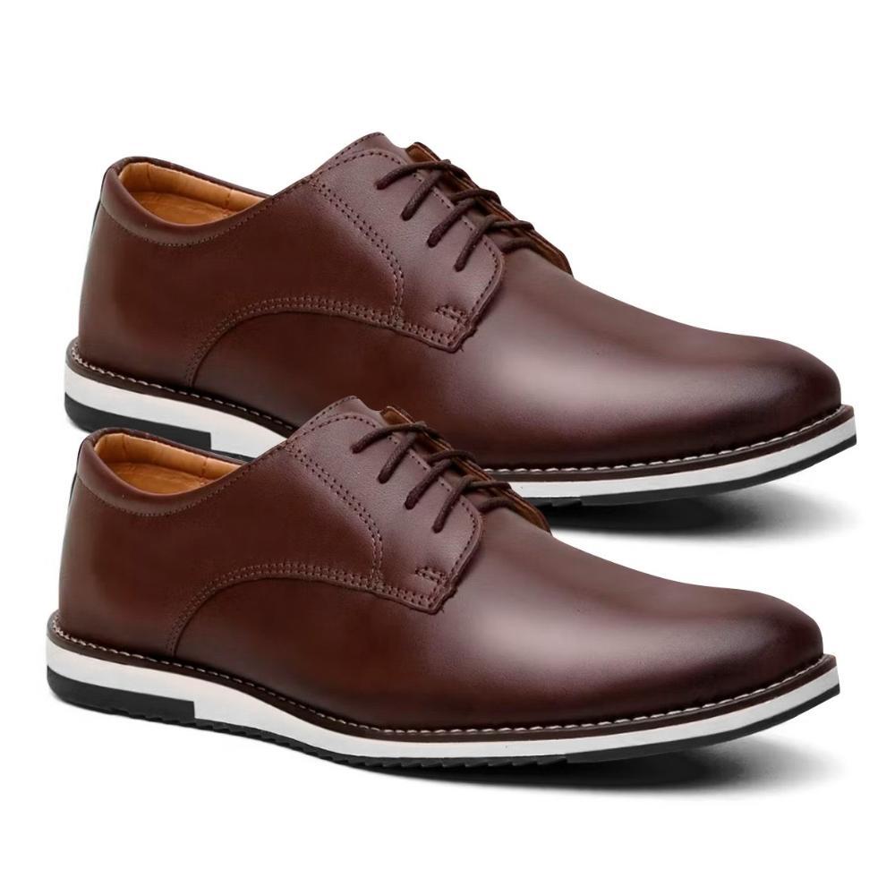 Kit 2 Pares de Sapato Oxford Masculino Derby Fino de Couro Premium Brilhante Com Solado Macio Costurado e Confortavel