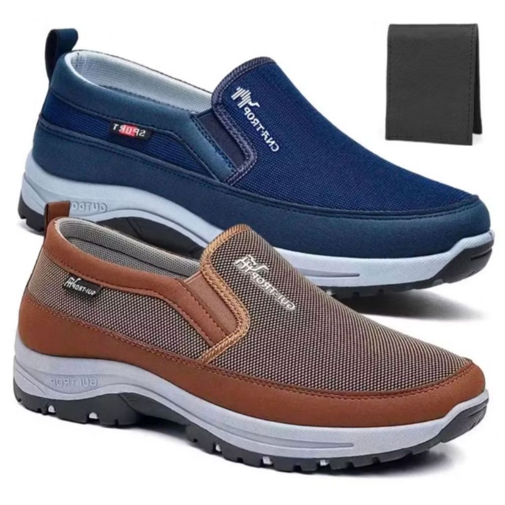 Kit 2 Pares De Tênis Sapatilha Mocasssin Masculino Ortopedico Adventure Estiloso Solado Impermeável Leve + Carteira