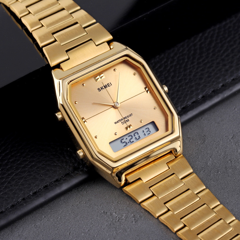 Relógio Unisexo SKMEI Sport Watch Vintage Dual Time Japão Gold Silver À Prova D'água