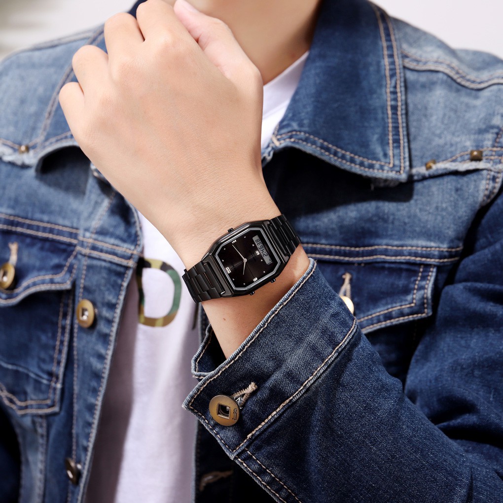 Relógio De Ouro Clássico SKMEI Feminino Quartzo Duplo 50M À Prova D'água Aço Inoxidável 1612