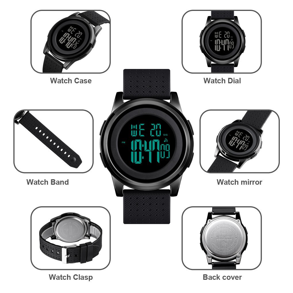 【 SKMEI Official 】 Gold Case Relógio Digital Faixa Respirável Homens Luminoso Moda Impermeável Relógios Esportivos Ao Ar Livre Anti-Impacto Pulseira De PU Alarme
