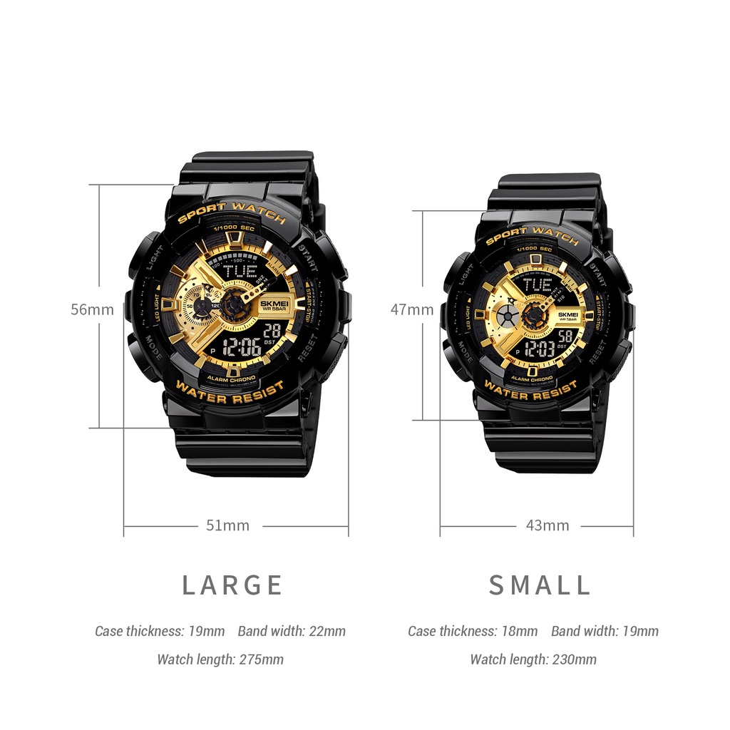 SKMEI Novo Relógio Esportivo De Moda 50 Metros Analógico Digital De Alarme De Discagem Grande De Casal Multifuncional