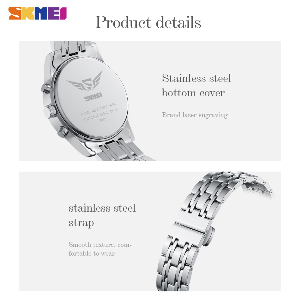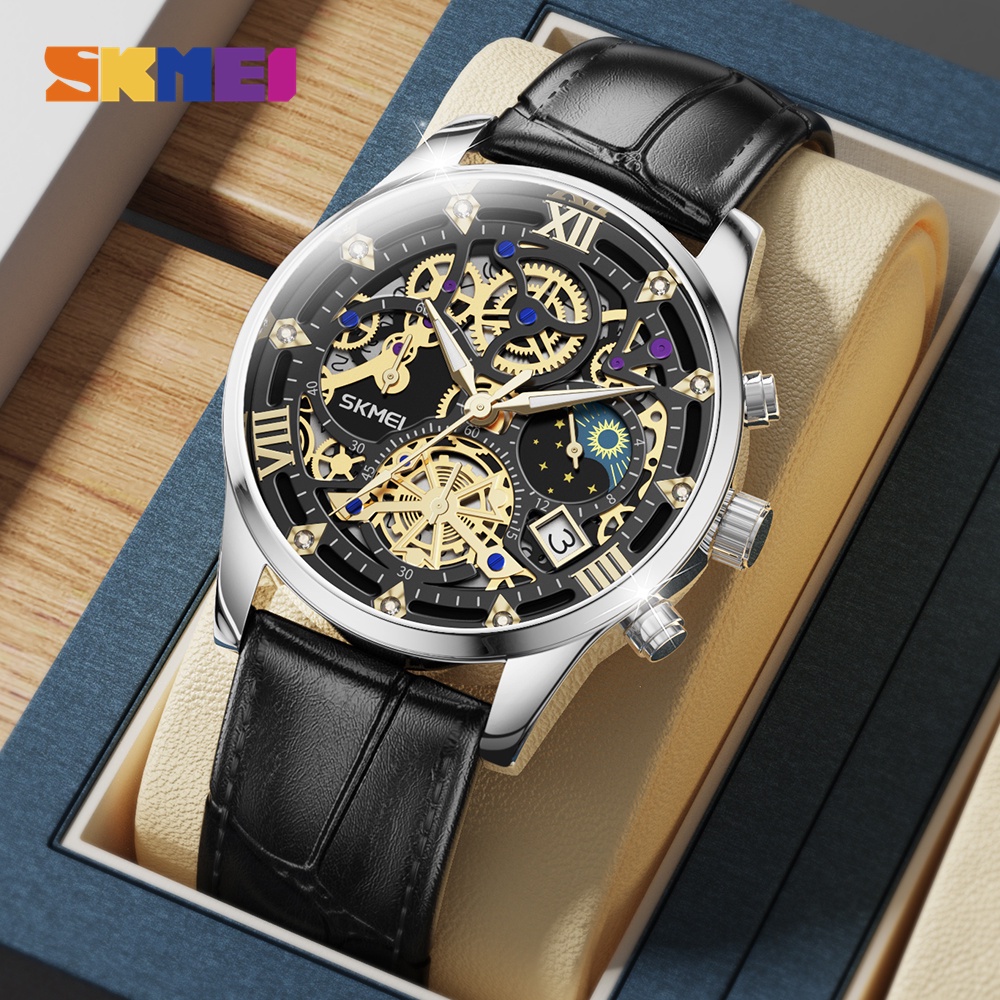 Relógio De Pulso Analógico Elegante De Quartzo SKMEI Para Homens Original Unisilver À Prova D'água Sun Moon Star Calendário Multifuncional Luminous Fashion Trend Relógios Analógicos Relo 7039