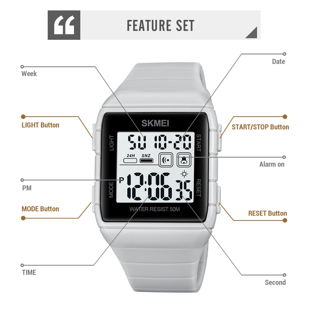 Relógio Eletrônico De Movimento SKMEI Esportivo Para Homens Dual Time EL Light Display Digital 50M À Prova D'água