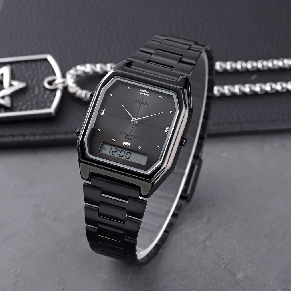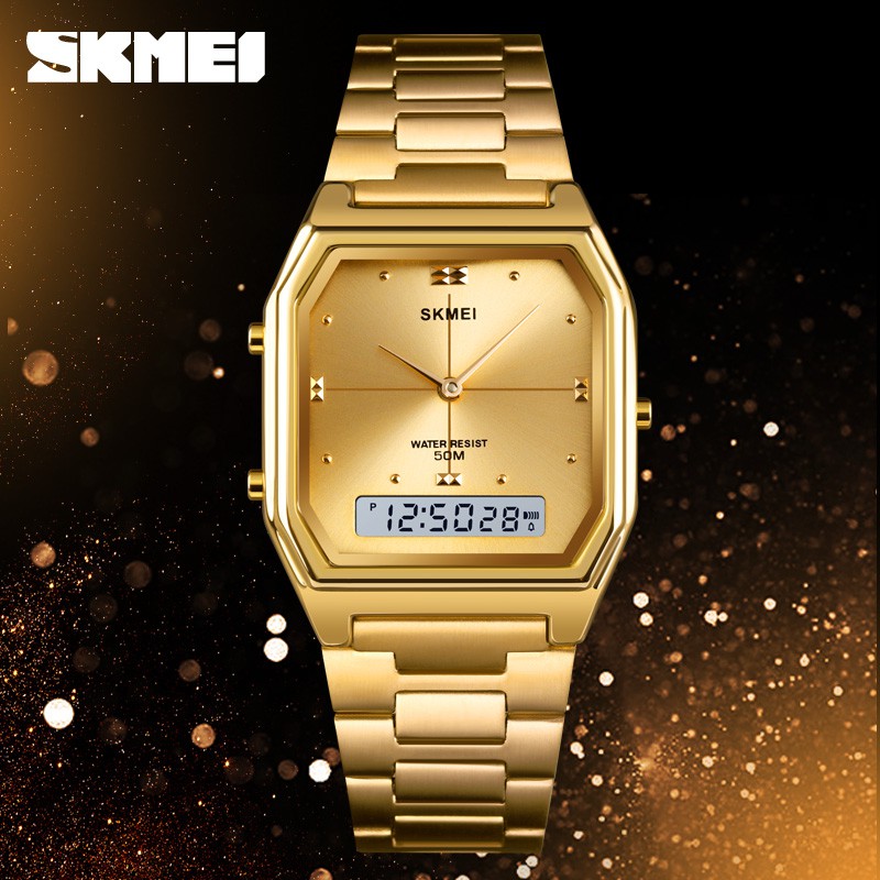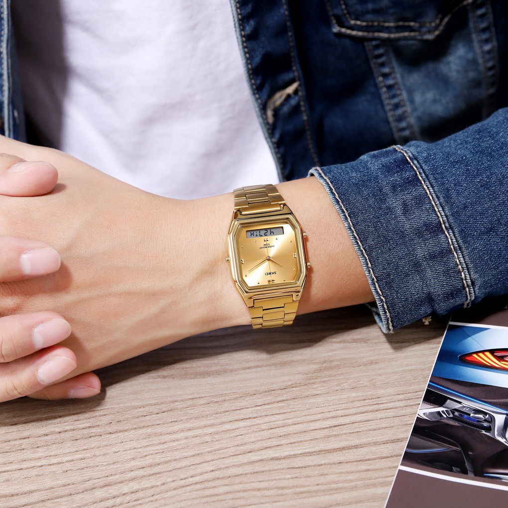 Relógio Esportivo SKMEI Vintage Dual Time Japão Ouro Prata À Prova D'água Relógios Unisexo De Vidro