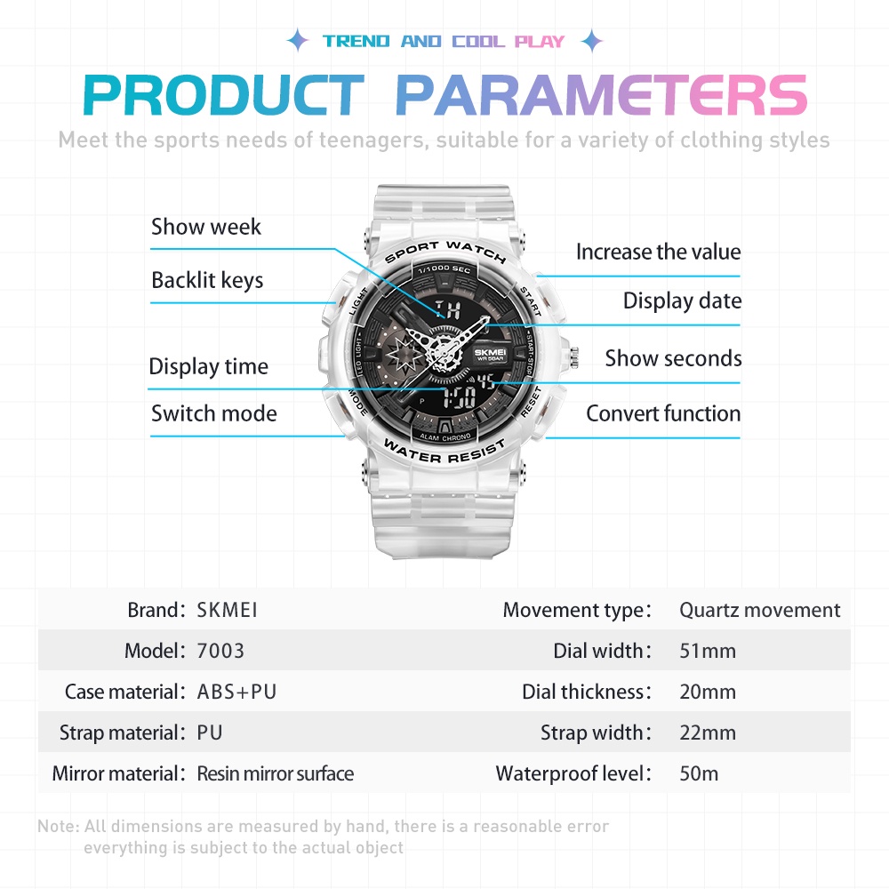 Relógio De Dupla Exposição skmei 7003 Esportivo Estudantil Masculino E Feminino Fashion Style Silicone Strap