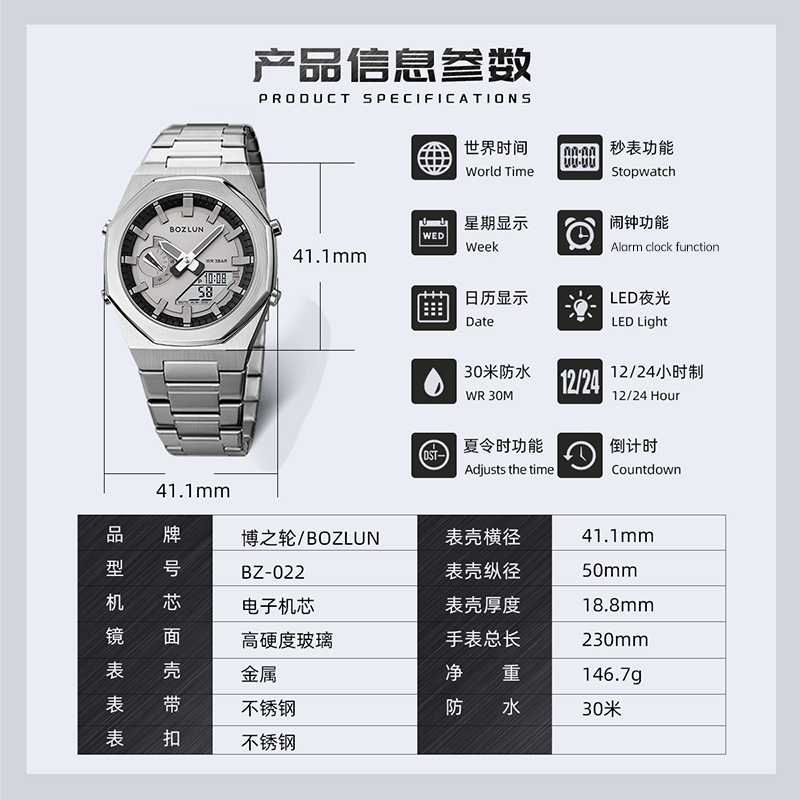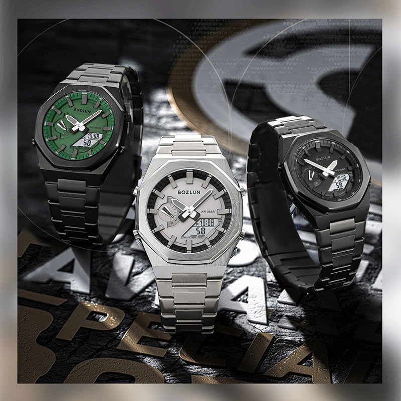 SKMEI BOZLUN metal Moda Dupla Exibição De Tempo digital LED Relógio De Luz Noturna Para Homens E Mulheres Esportivo