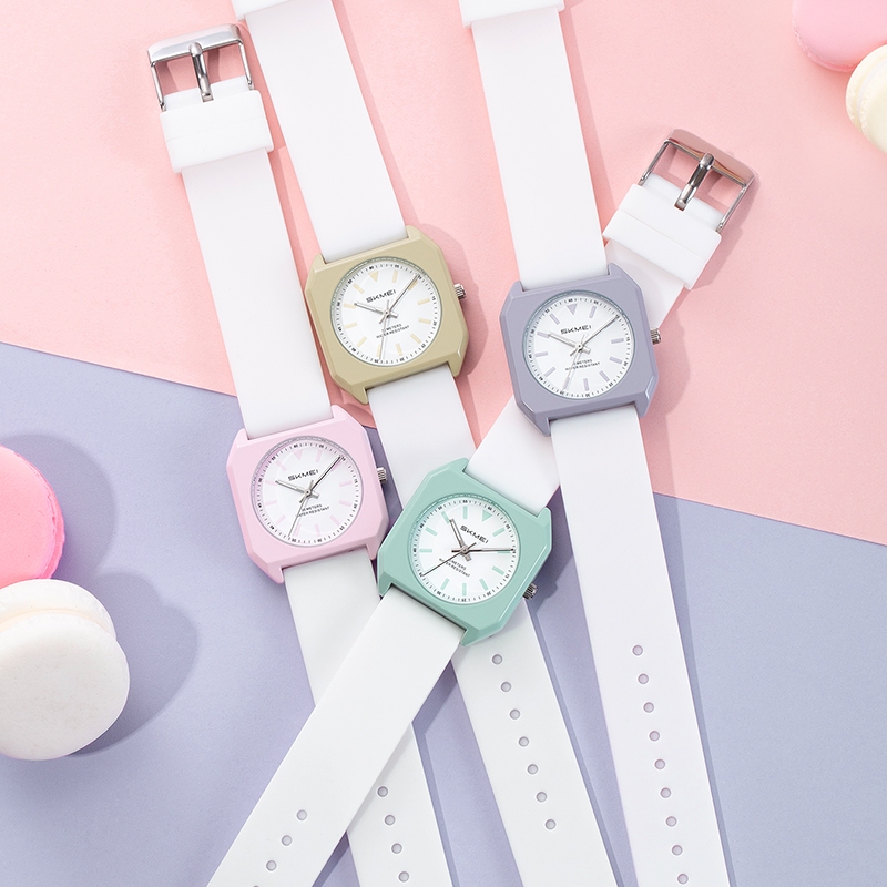 Relógio Feminino Quadrado SKMEI Elegante Cor Macaron Pulseira De Silicone De Alto Valor