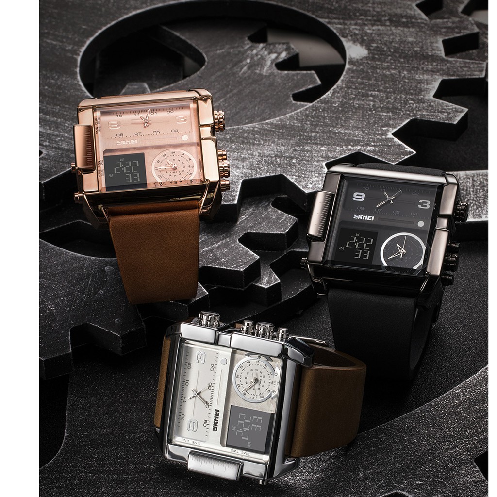 Skmei luxo homem quartzo relógio Criativo Lazer Multi-Função Quadrado Grande Mostrador Masculino Relógios De Negócios Eletrônicos