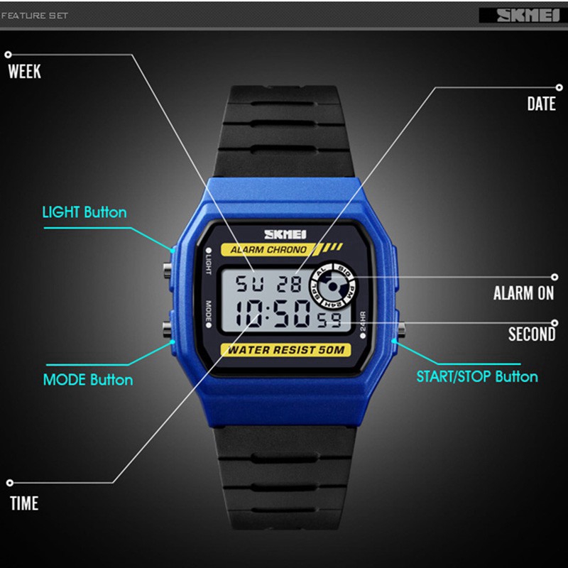Relógio digital à prova d'água SKMEI com relógio feminino unissex LED simples
