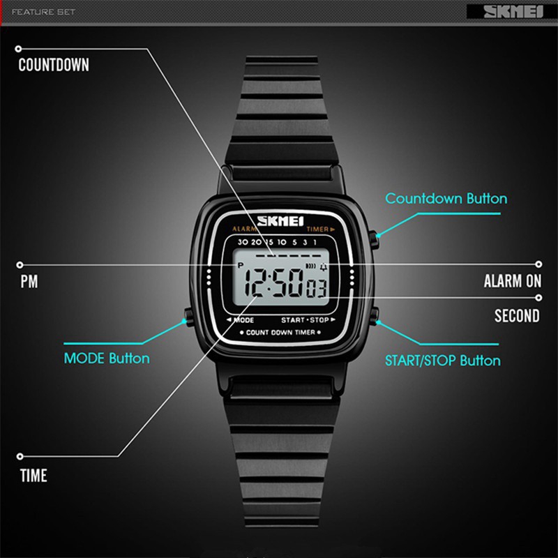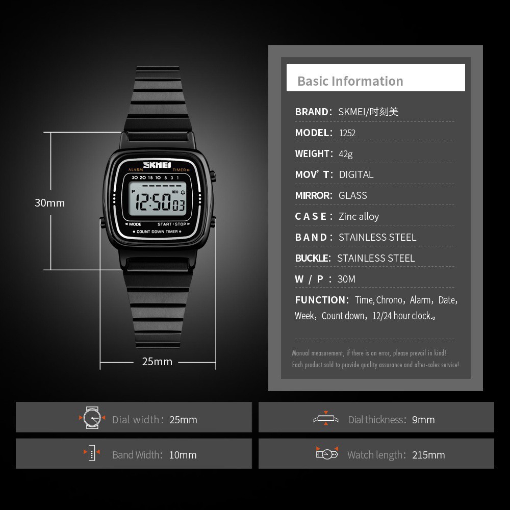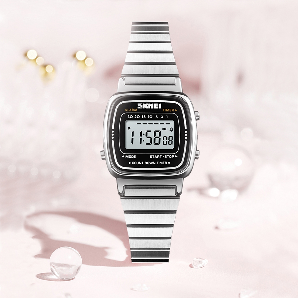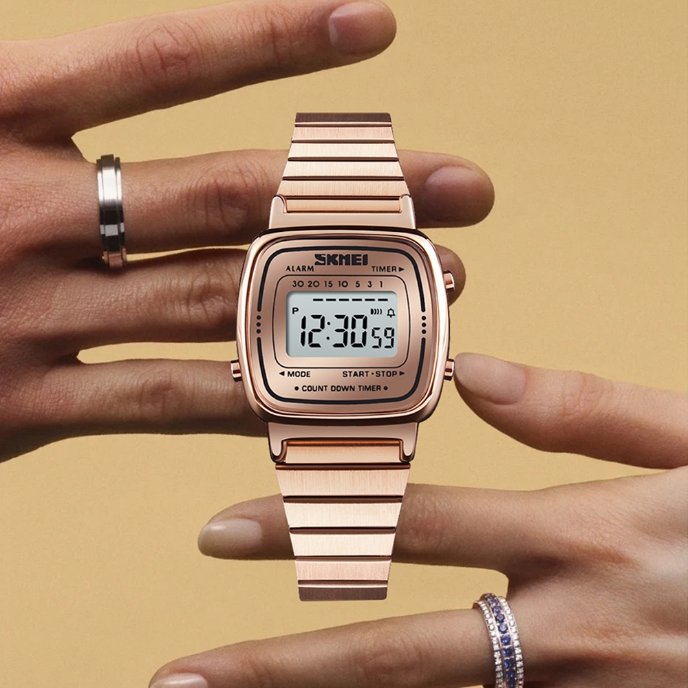 SKMEI 1901 Luxury Women vintage LED Digital Watches De Pulso Com Pulseira De Aço Inoxidável À Prova D'água