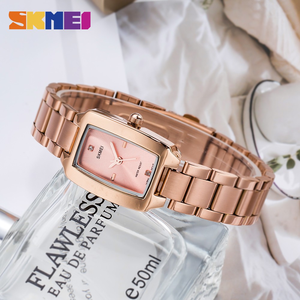 Skmei marca de luxo relógios femininos diamante dial pulseira relógio de pulso para a menina elegante senhoras relógio de quartzo feminino vestido relógio