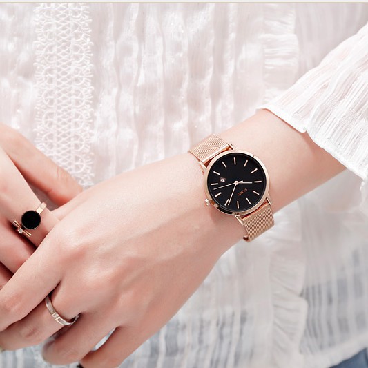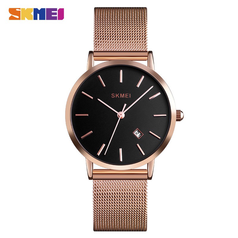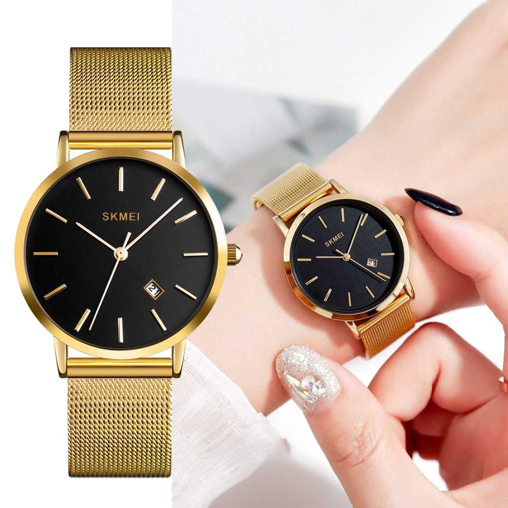 Skmei Relógio de luxo feminino Data da água da moda ouro feminino malha de aço inoxidável relógio de quartzo feminino