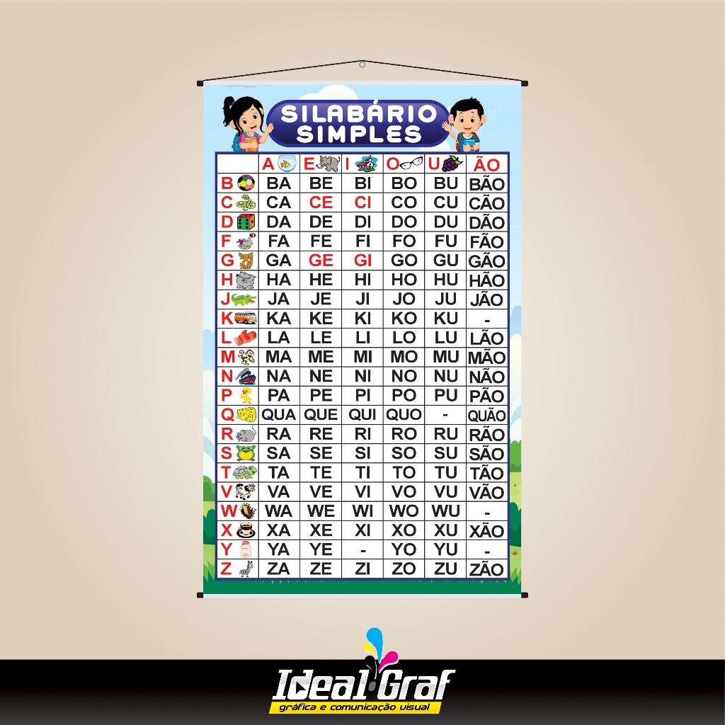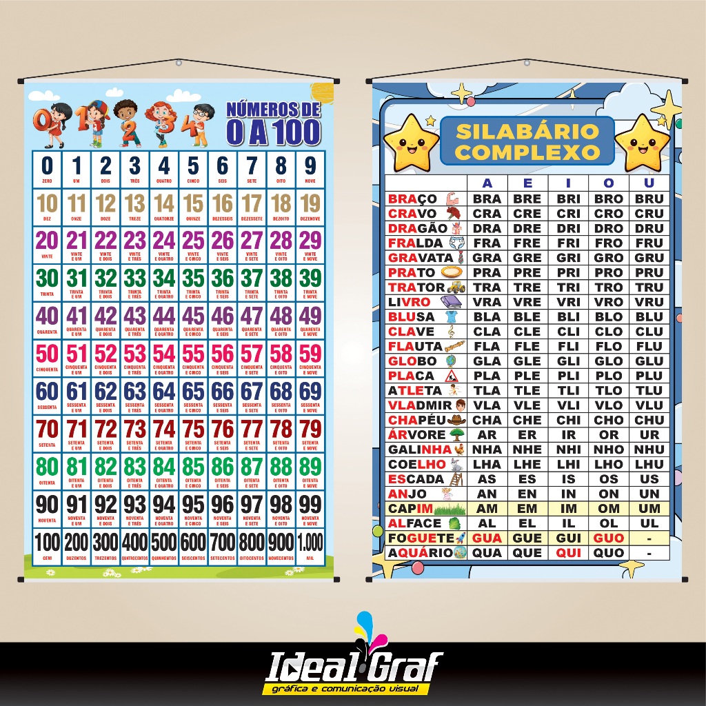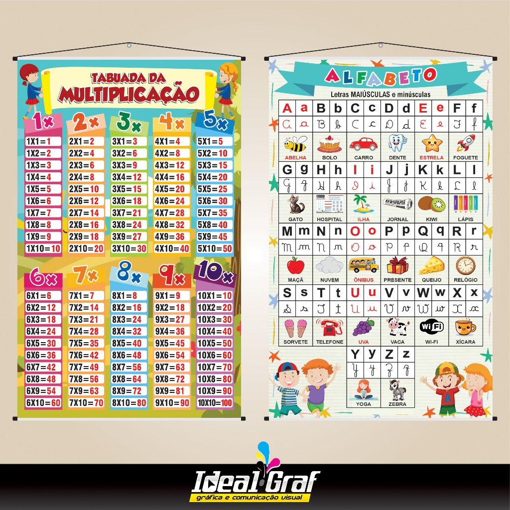Kit Banners Ilustrados Pedagógico Silabário Simples Complexo Alfabeto Números Tabuada Multiplicação