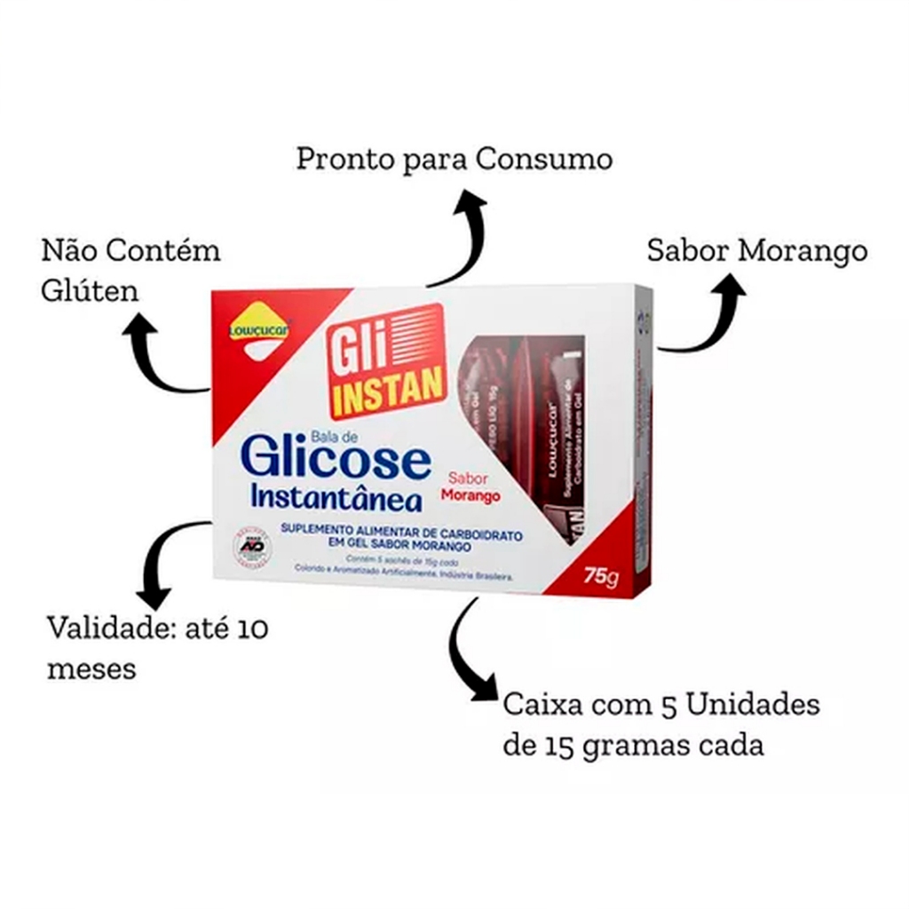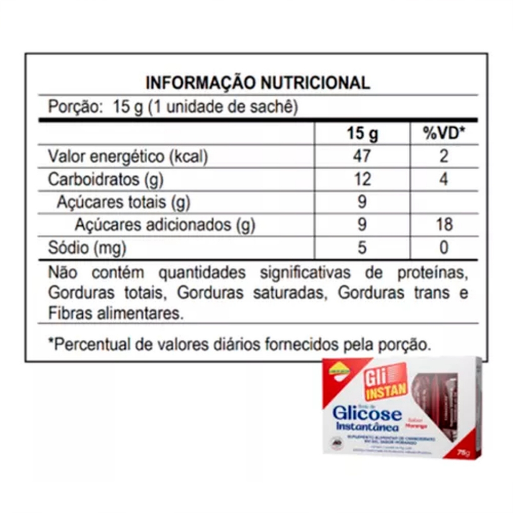 Gli-Instan Lowçucar Sabor Morango Glicose Instantânea 5X15G