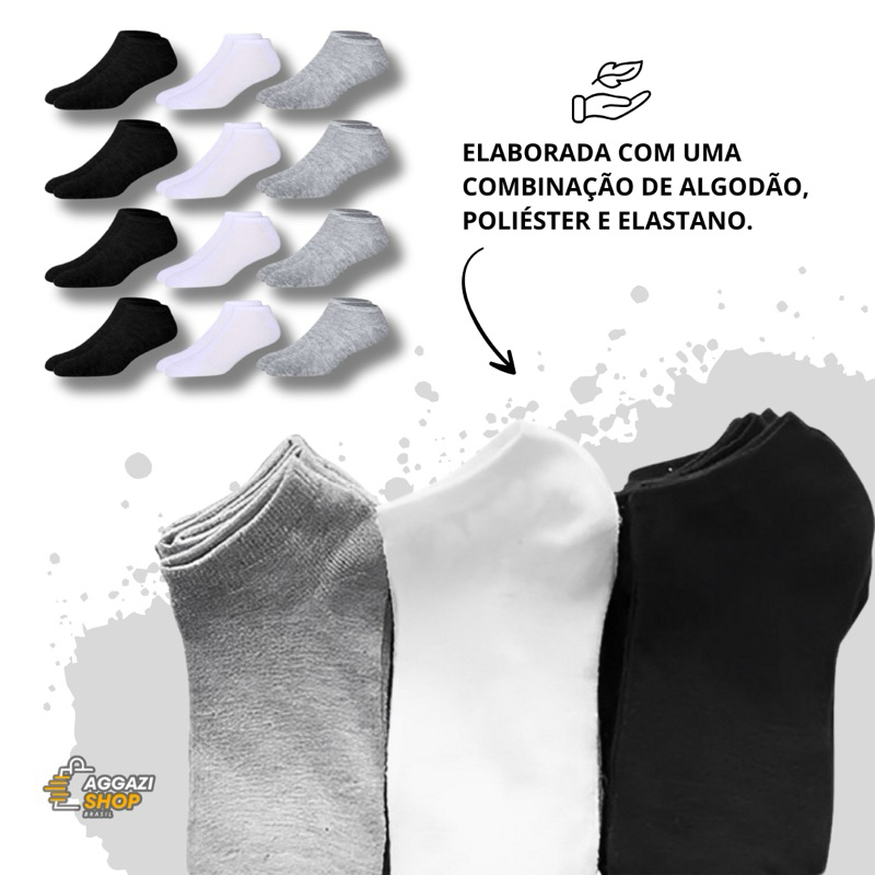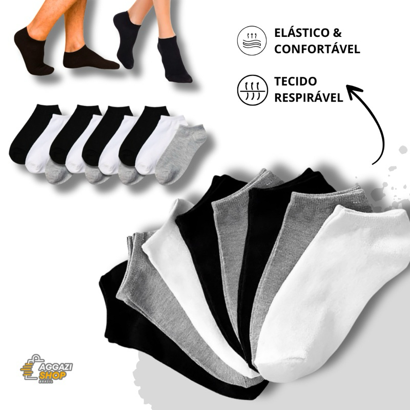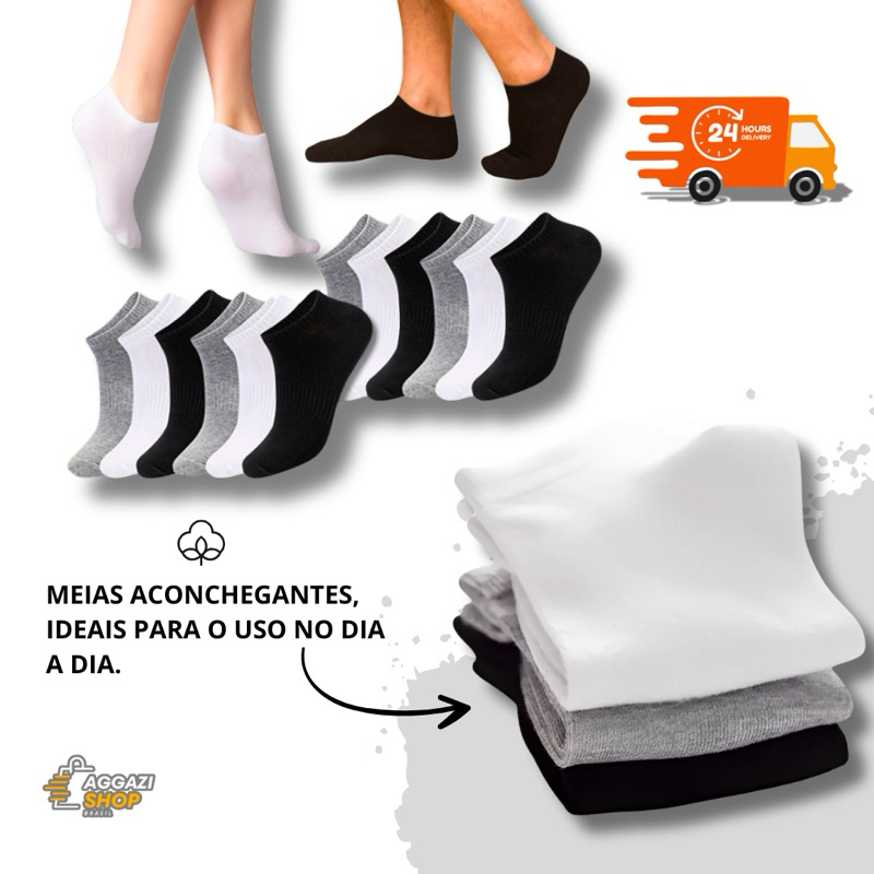 Kit Até 18 Pares de Meia Soquete Unissex Com Design Anatômico