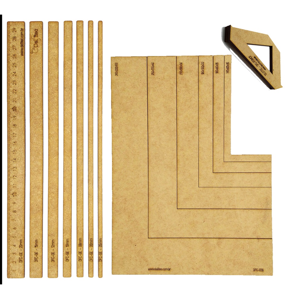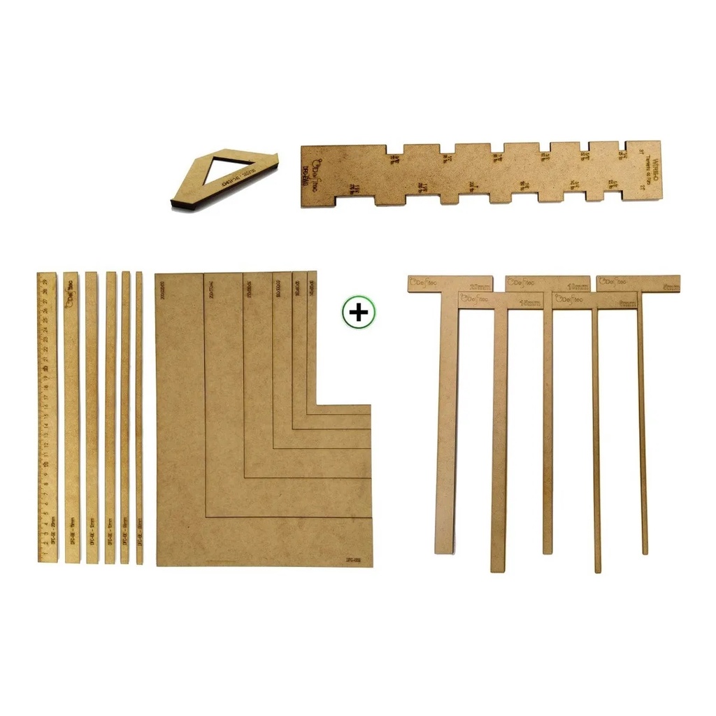 Kit 21 Peças Completo Encadernação Cartonagem Esquadros, Regua T, Fio de Cabelo Gabaritos Wire-o MDF