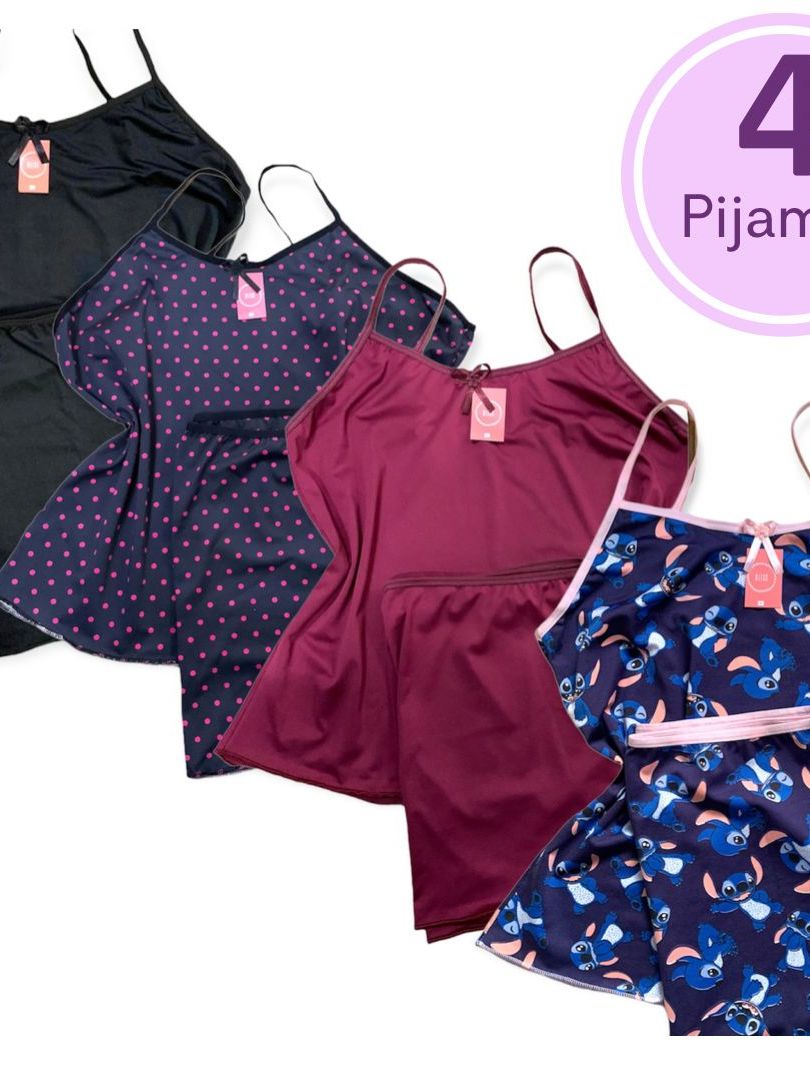 Kit 4 pijama feminino baby doll short doll liso e estampado P ao Plus size moda feminina