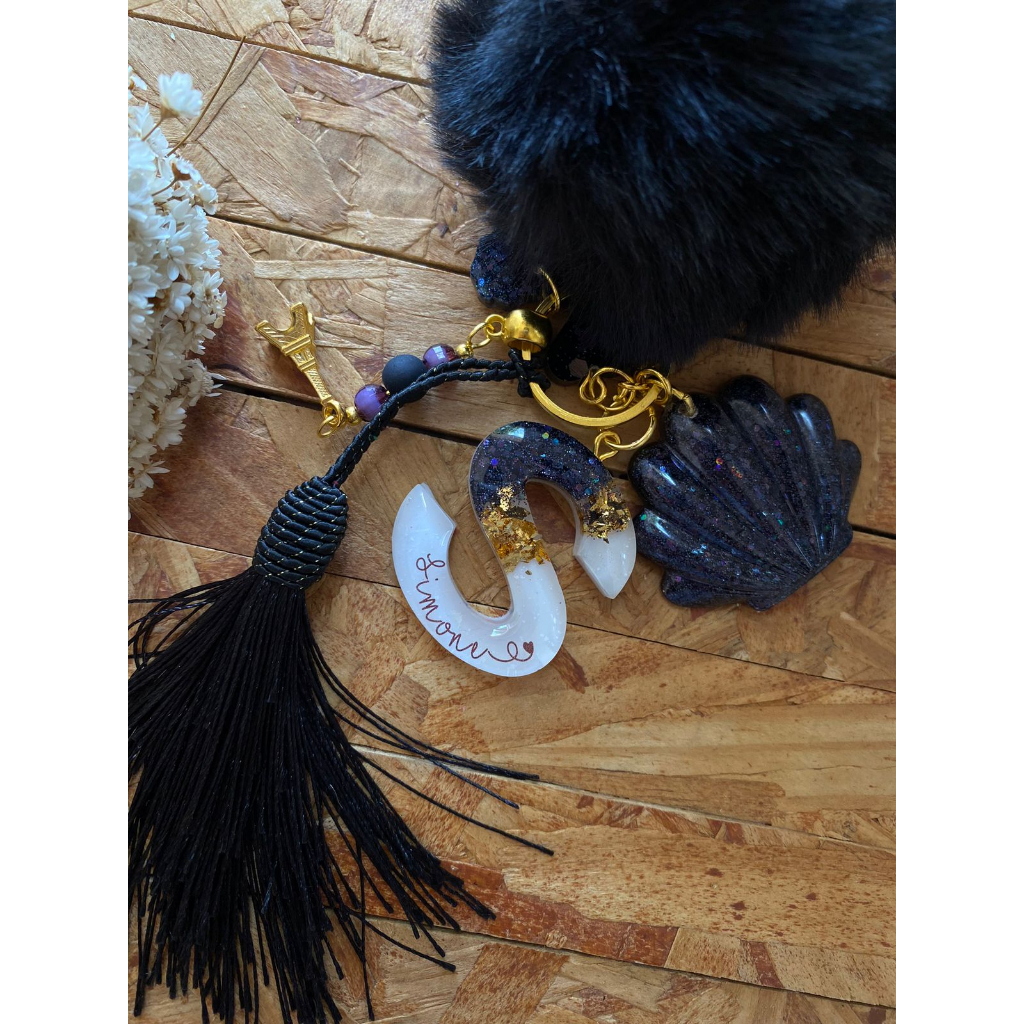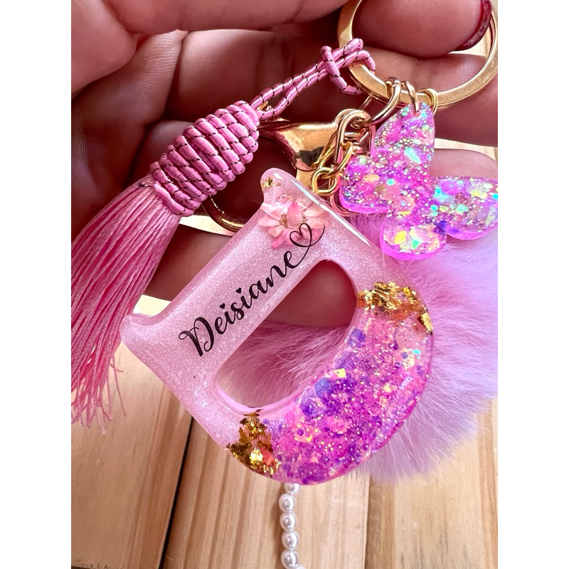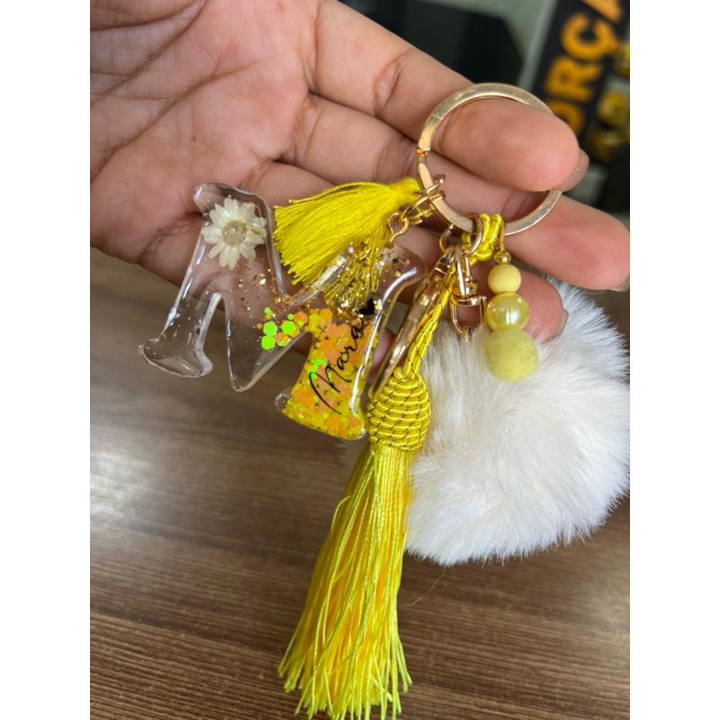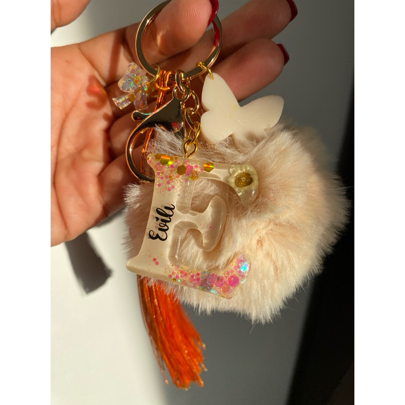 Chaveiro de resina personalizado com nome + tassel + pompom (LEIA A DESCRIÇÃO)