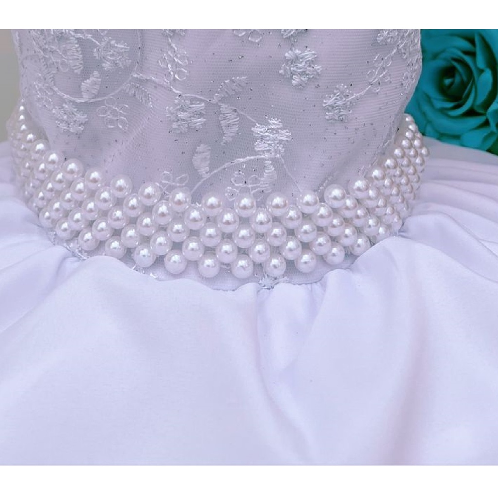 Vestido Infantil Branco Luxo Dama de honra Formatura Festa Juvenil Floral Casamento 4 A 16