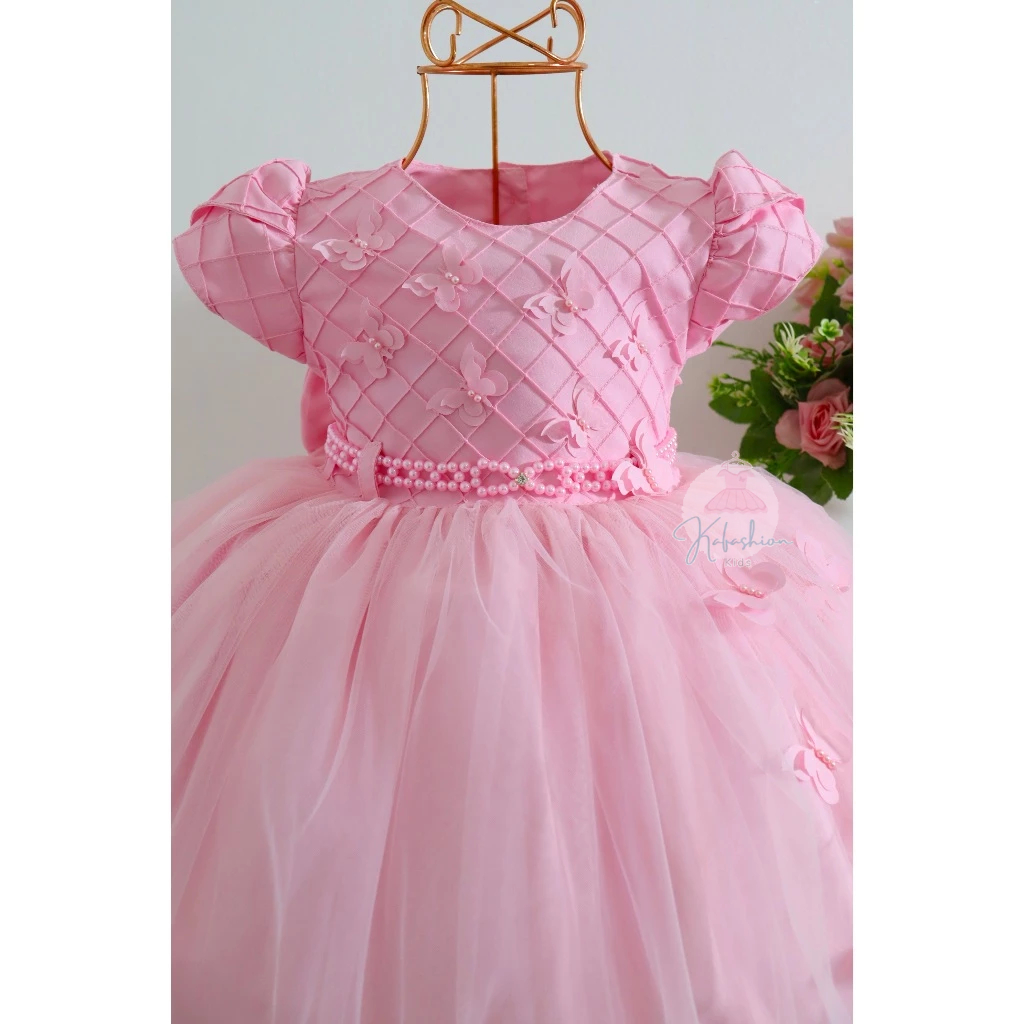 Vestido Infantil Jardim Encantado Rosa Bosque Daminha Da Festa Borboleta Bebê Menina Criança