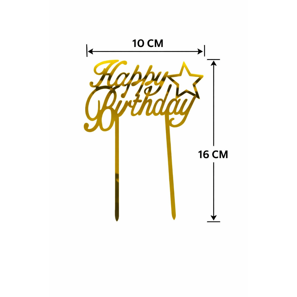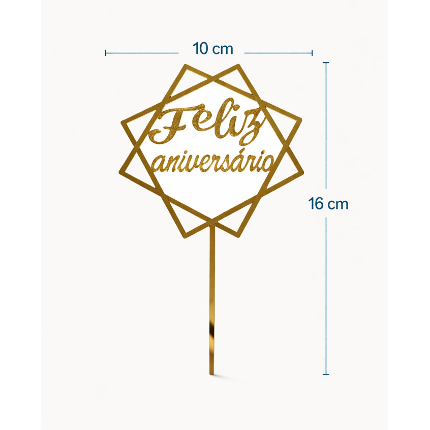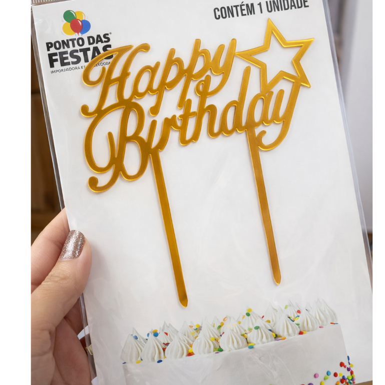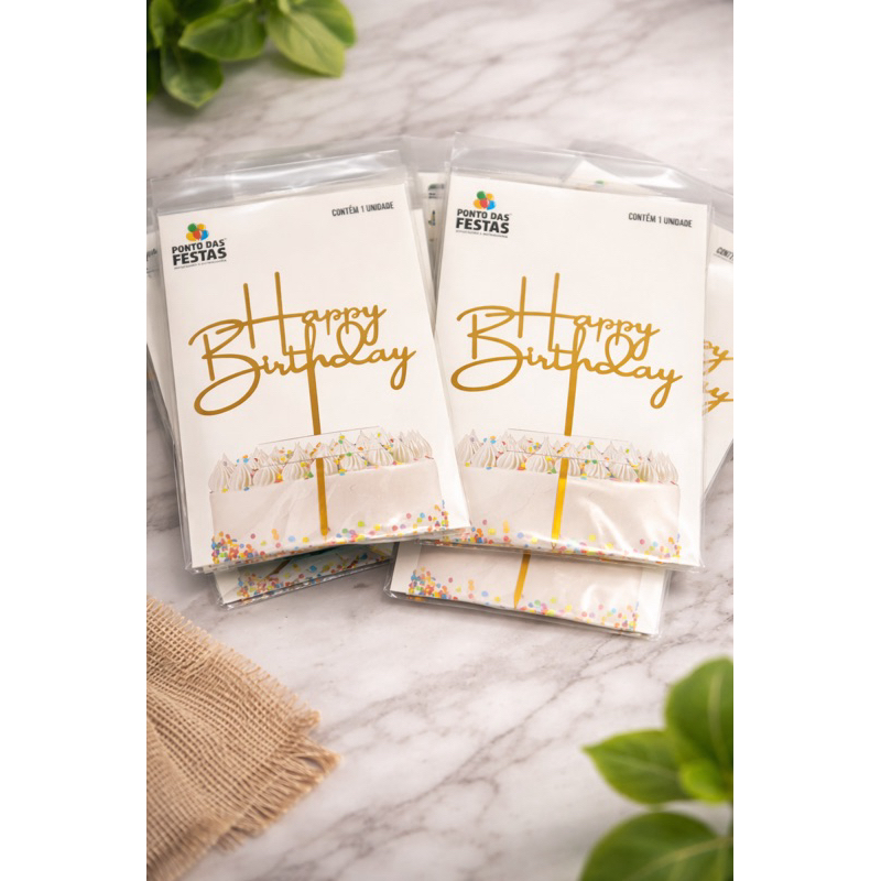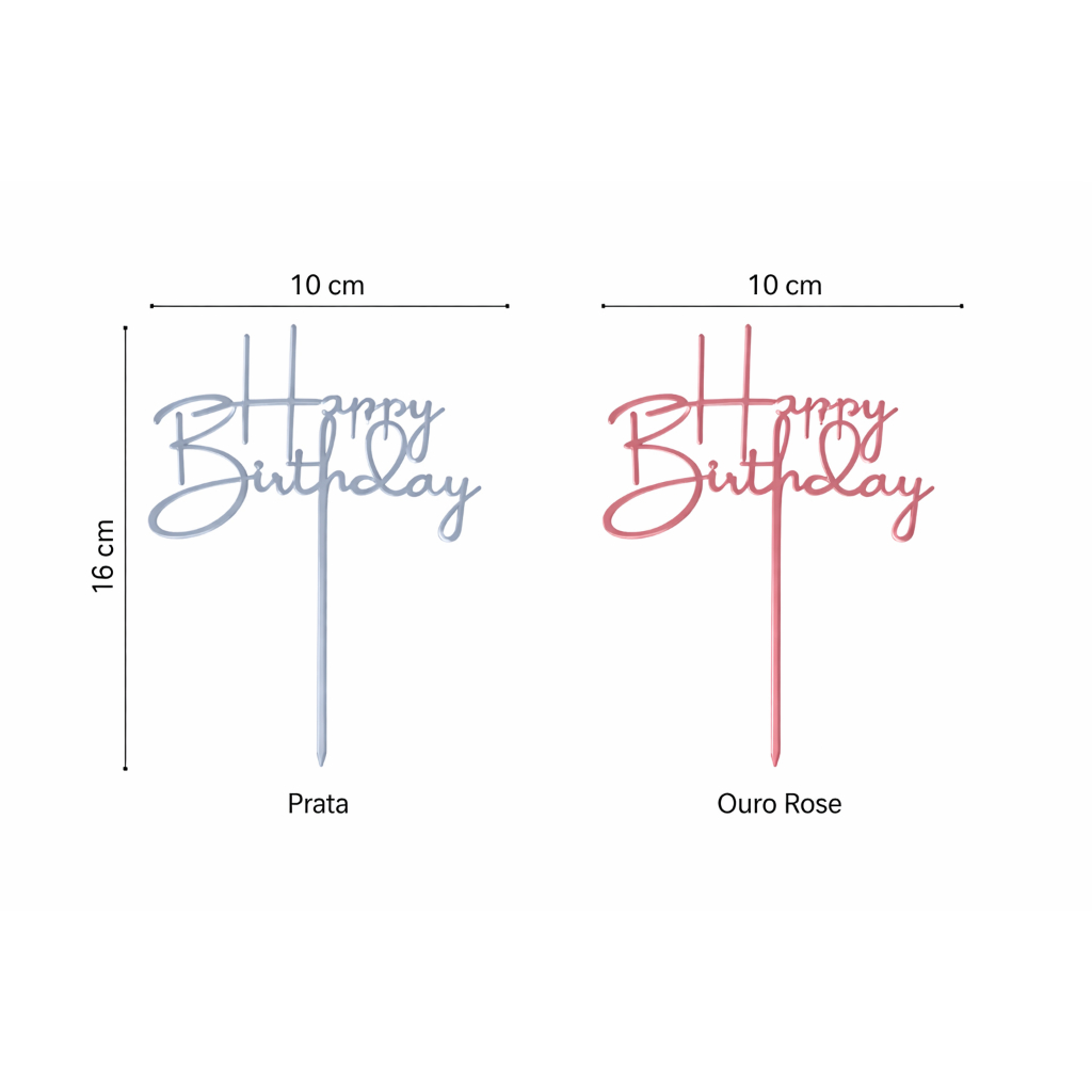 Topo de Bolo Happy Birthday em Acrílico Premium | Dourado ou Prata – Decoração Aniversário