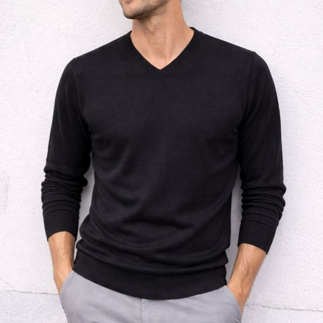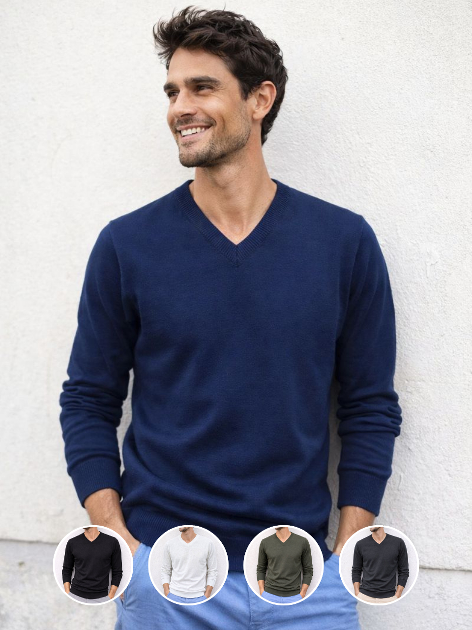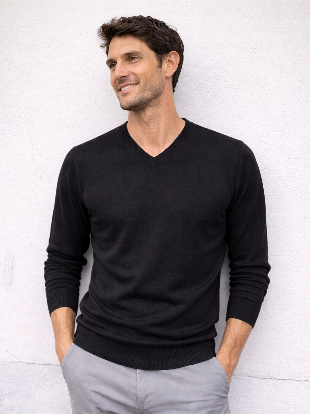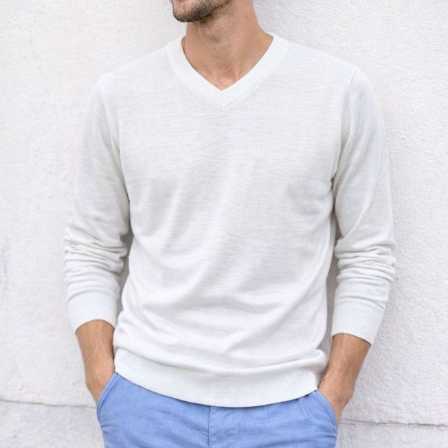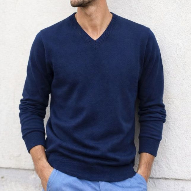 Blusa de Frio Suéter Premium em Tricot Trico com Gola em "V" Masculina Masculino Lã Acrílica - 004