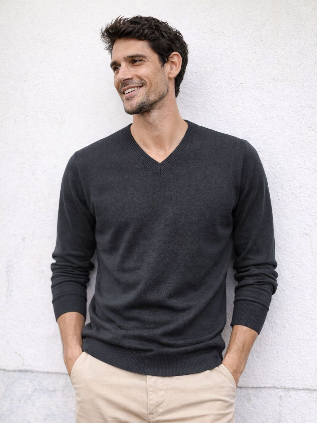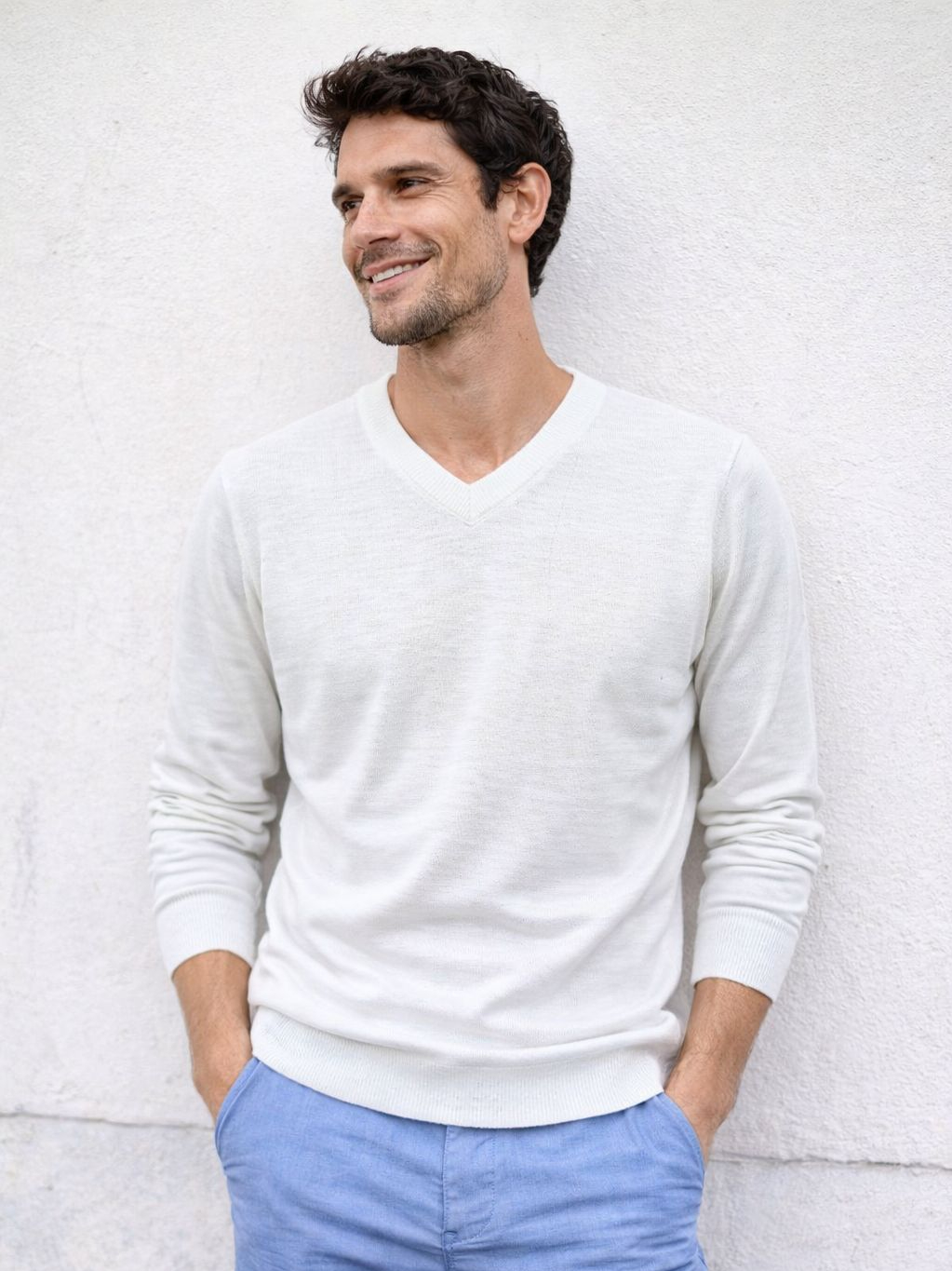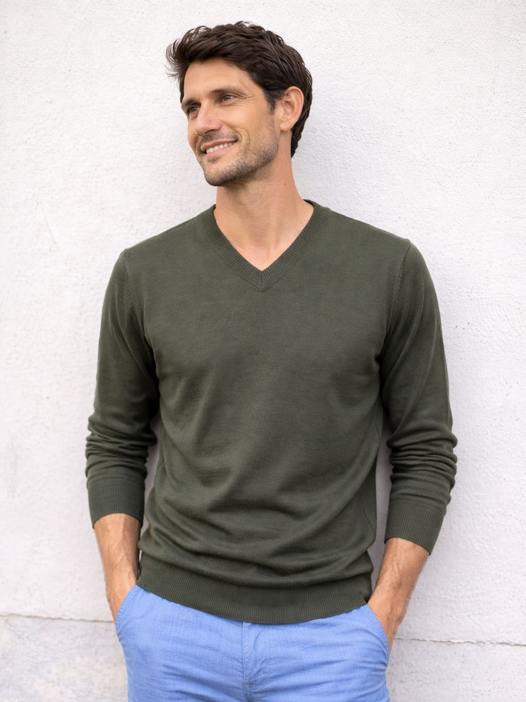 Blusa de Frio Suéter Premium em Tricot Trico com Gola em "V" Masculina Masculino Lã Acrílica - 004
