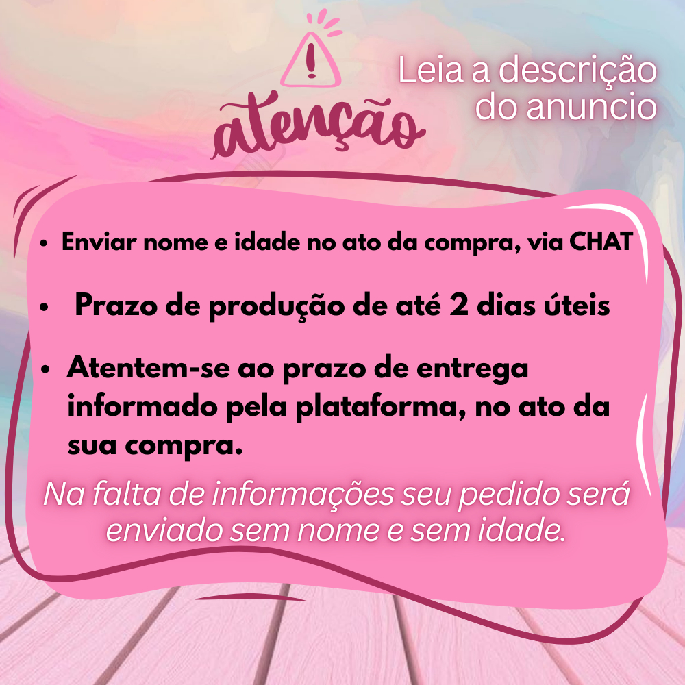 Sob encomenda: envio após 4 dias da compra