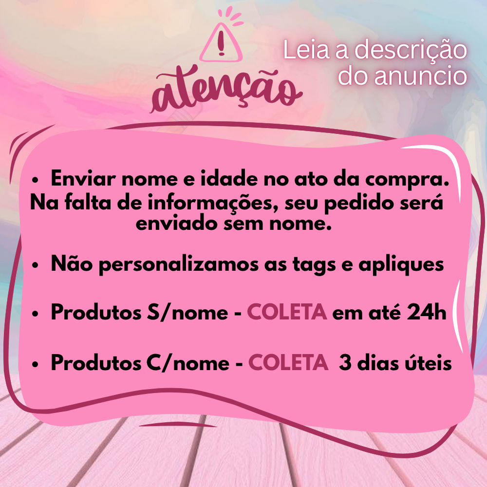 Sob encomenda: envio após 4 dias da compra