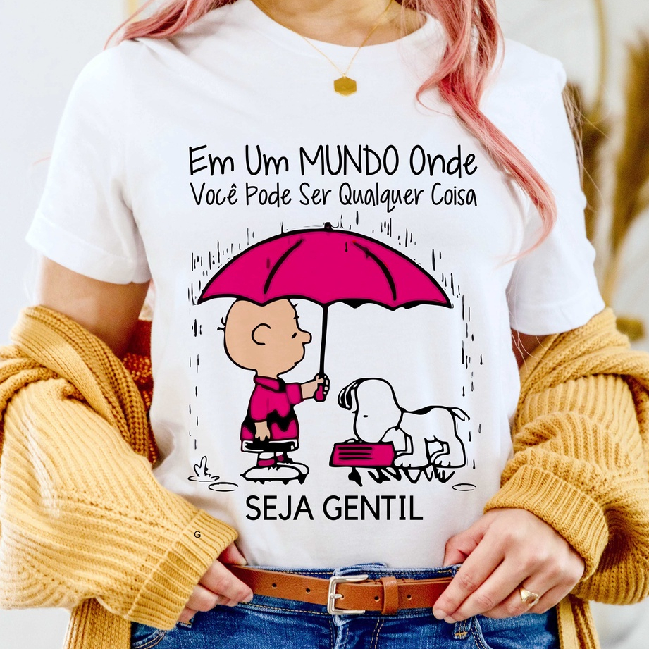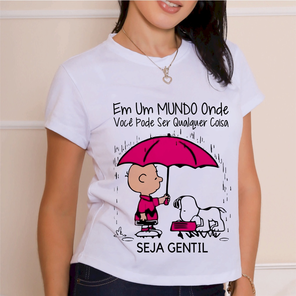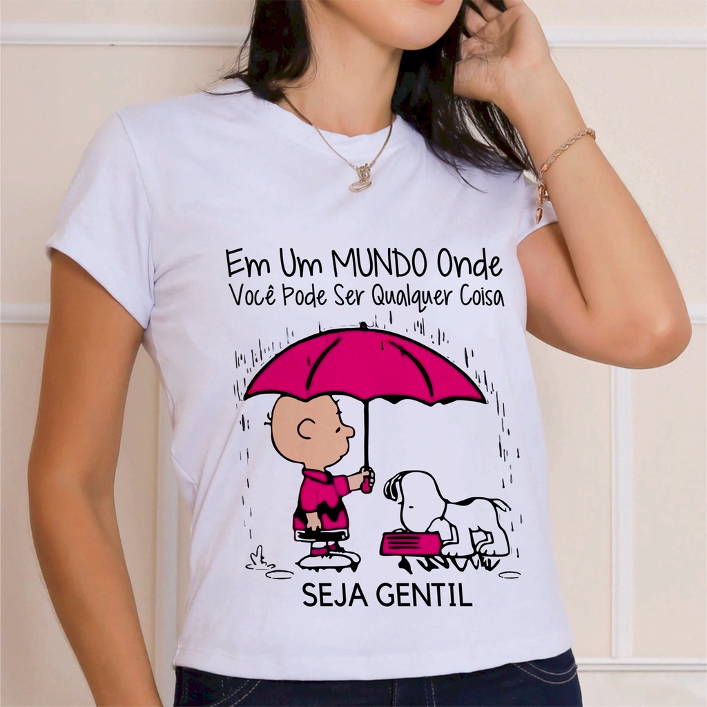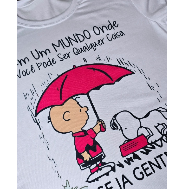 Camiseta tshirt branca estampada personalizada Estampa frase Snoopy polielastano
