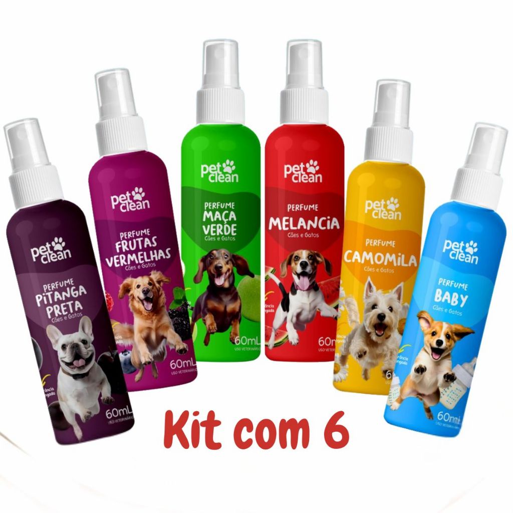 Pet Clean Kit 6 Perfumes 60ml cada Fragrâncias Diferentes para Cães e Gatos