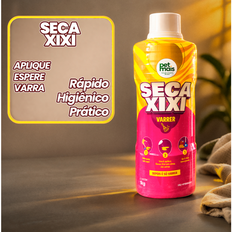 Seca Xixi 1kg Profissional Varrer Urina Vira Pó Higieniza e Neutraliza Odor para Cachorros e Gatos