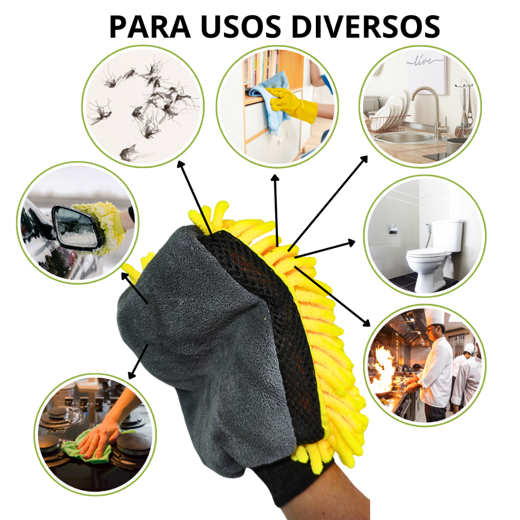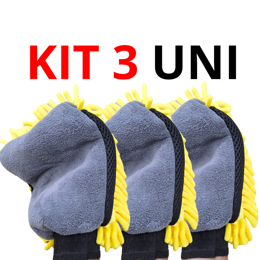 1 e 3 Luvas de Microfibra dupla Multifuncional SupeGrossa para Limpeza Lavagem Carro ou domestica