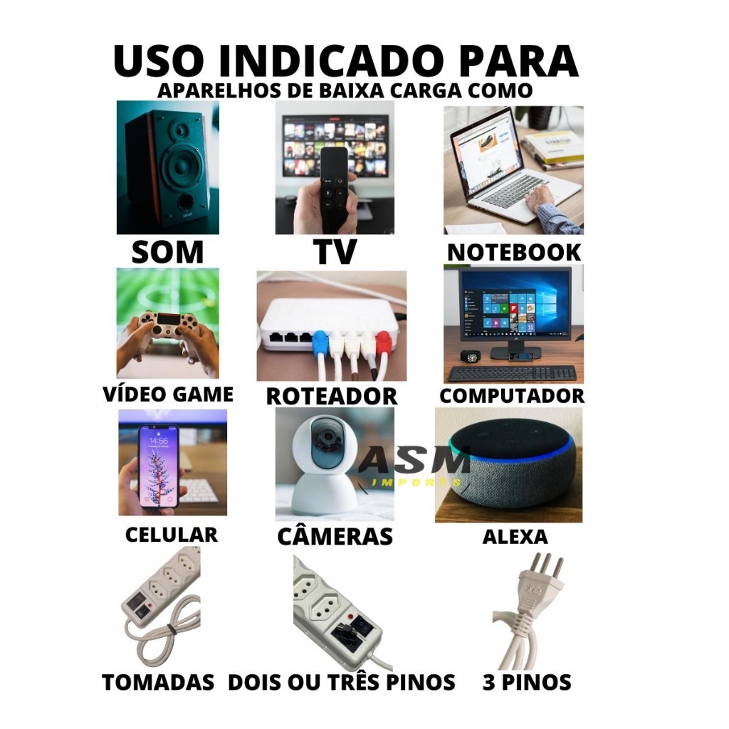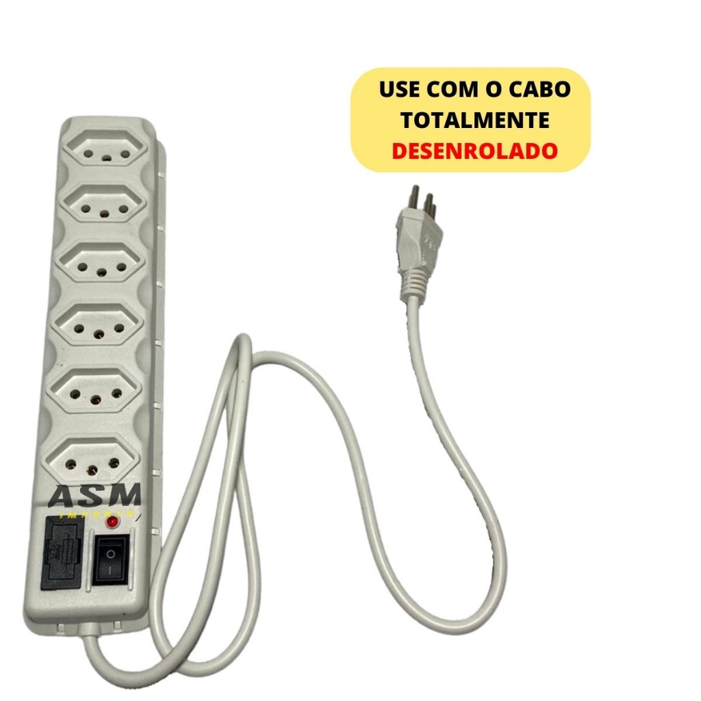 Filtro de Linha de 6 Tomadas Régua + adaptador em cubo 4 entradas Proteção P/ Tv Som Celular
