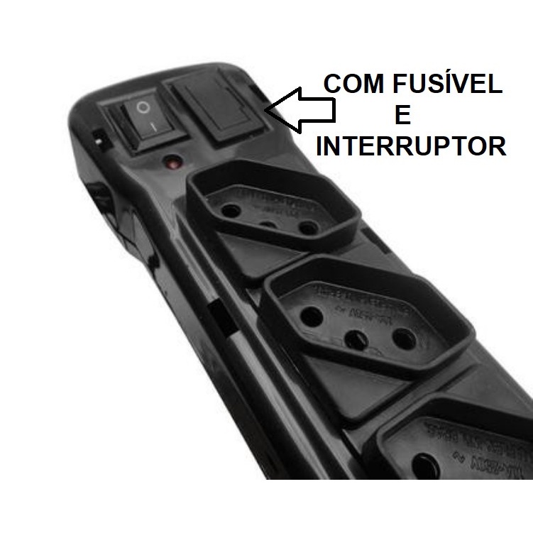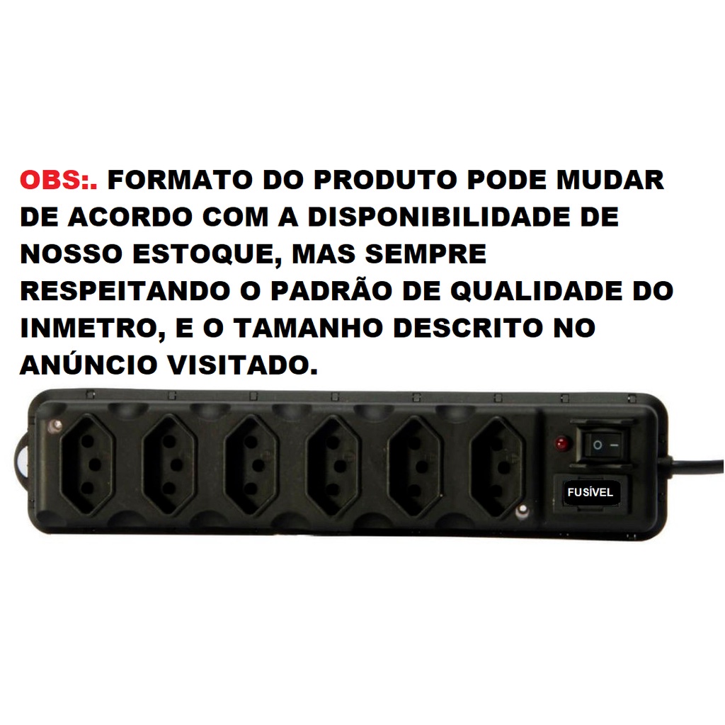 FILTRO DE LINHA COM 6 TOMADAS PARA ENERGIA ELÉTRICA ANTI CURTO EM PVC FIO 85CM Compeão
