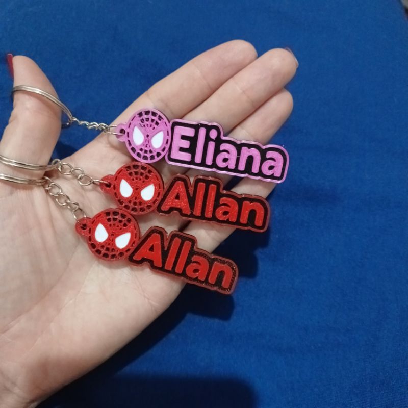 KIT CHAVEIROS Homem aranha personalizado com nome, tag para identificação escolar, mochila, estojo, aniversário