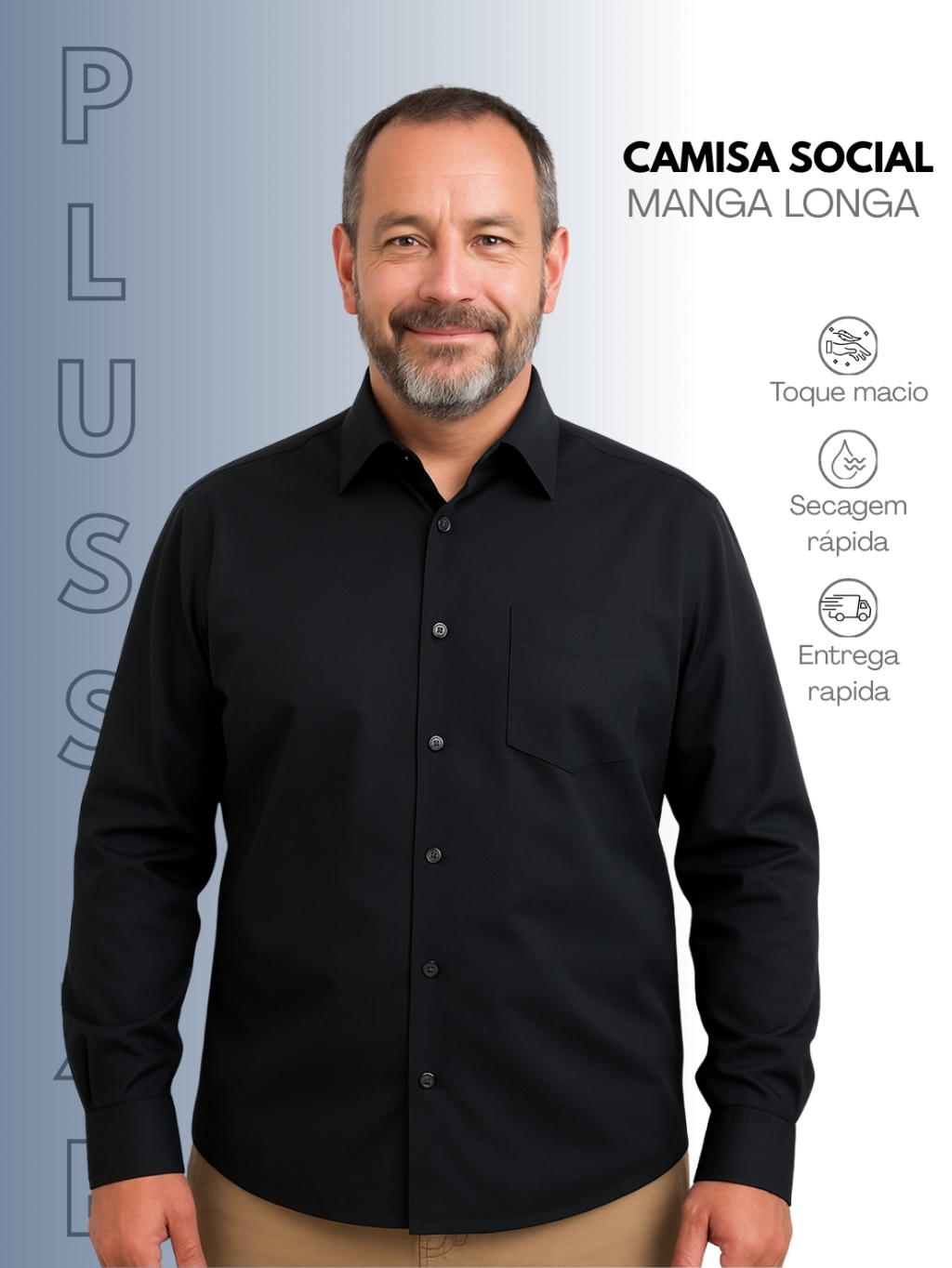 Camisa Social Plus Size Masculina Manga Longa Premium Luxo