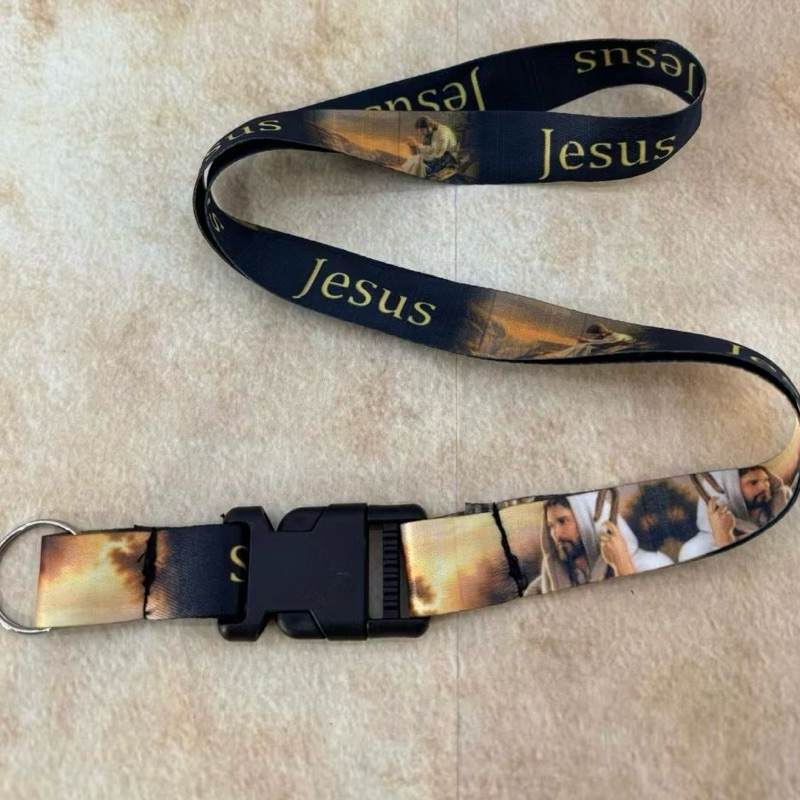 Cordão Religioso Jesus Fé Deus é Fiel Gratidão Tipo Chaveiro Em Tecido Para Chave Crach