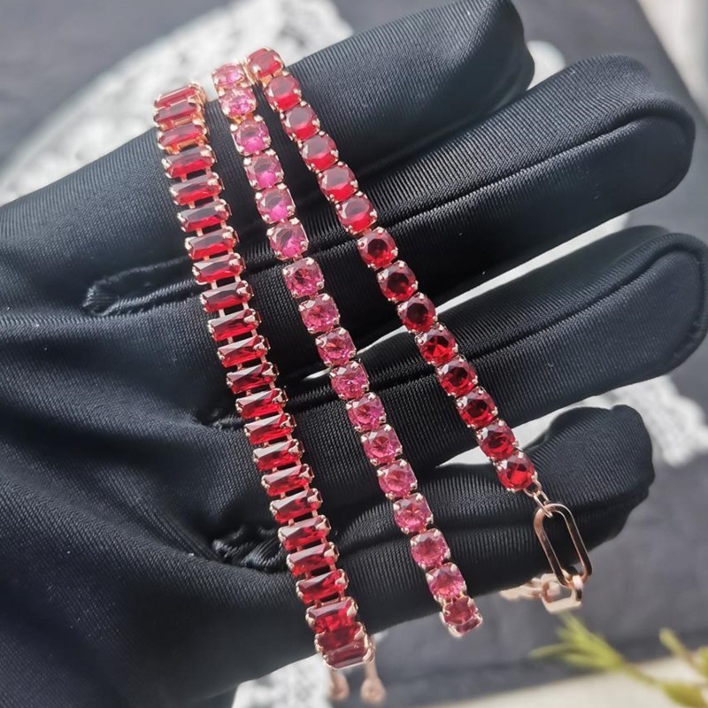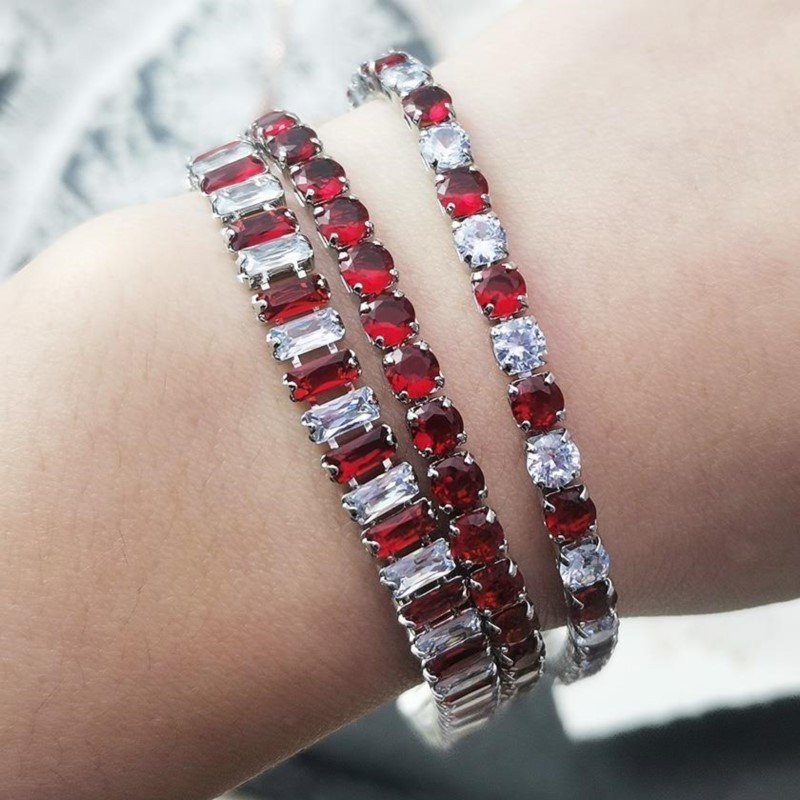 Designer Zircônia Vermelha Pulseiras De Tênis Curto Para Mulheres Homens Cadeia Ajustável De Cristal Deslumbrante Na Festa Da Mão Jóias De Presentes Diários