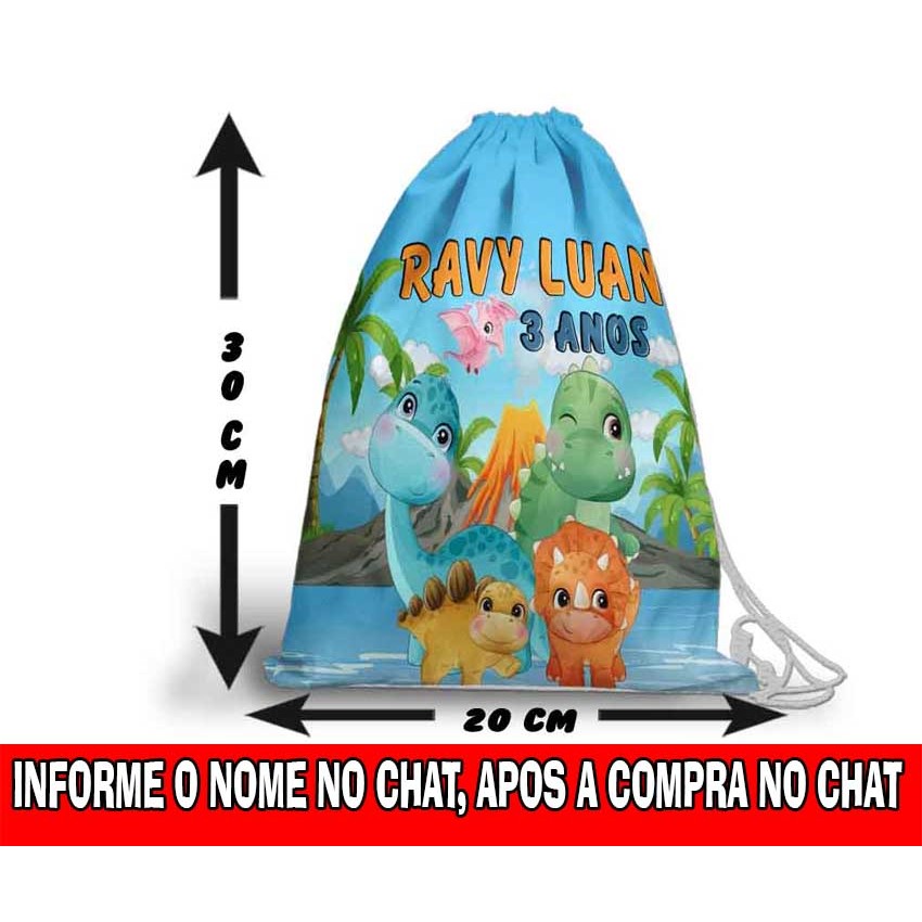 Mochilinha Sacolinha Mochila Saco Sacochila Saquinho Lembrancinha Brinde Aniversario Personalizadas Dino Baby