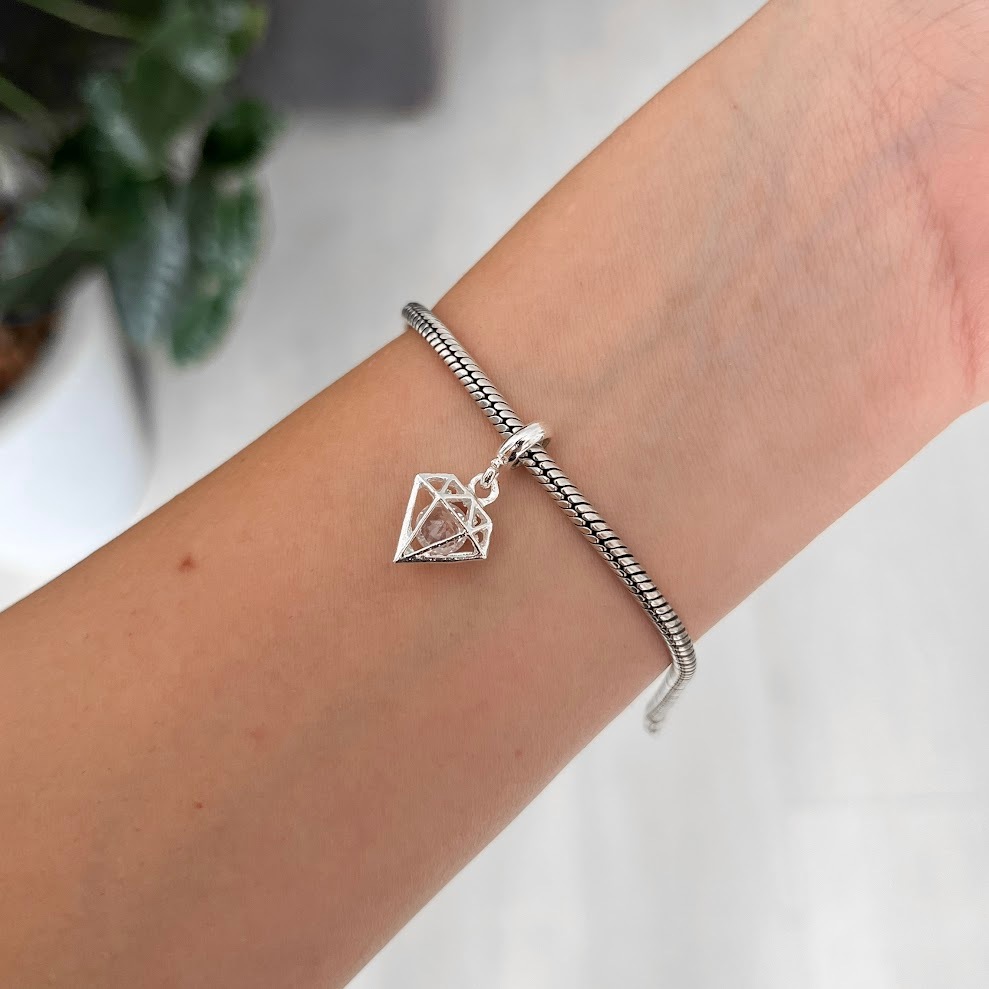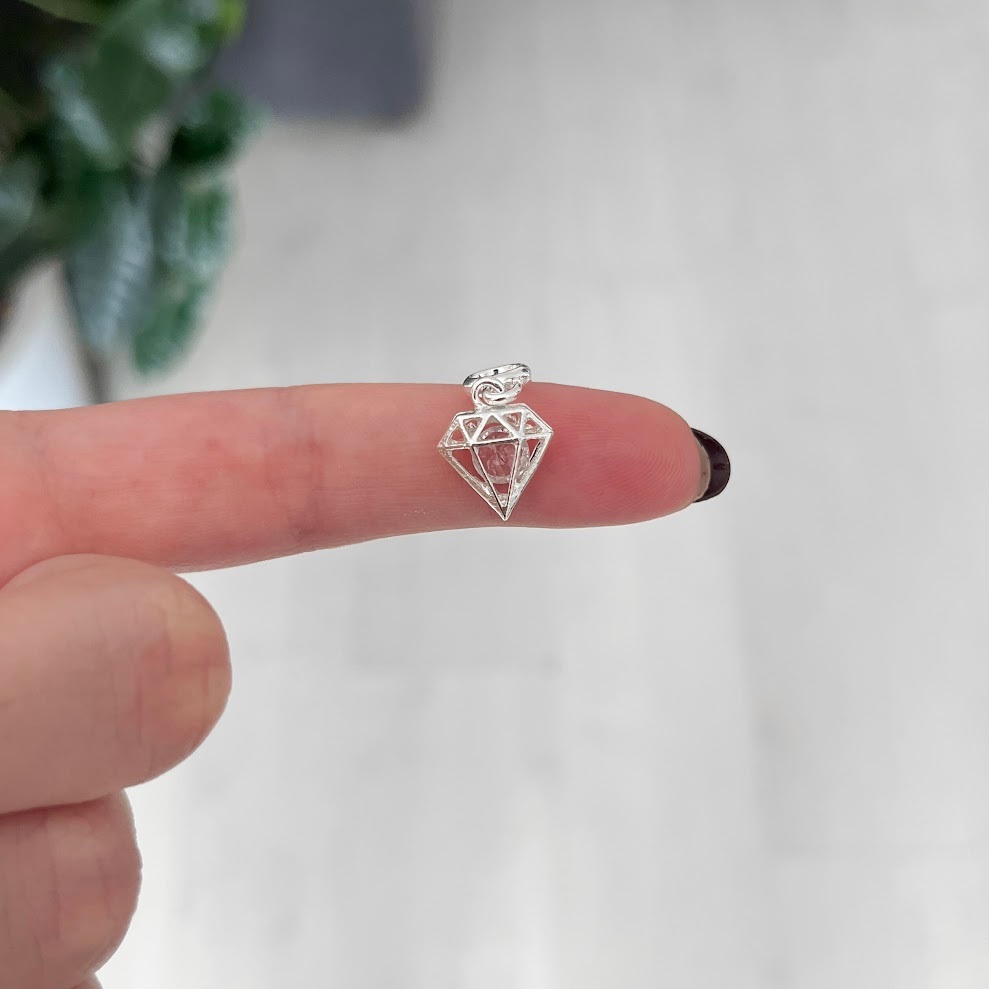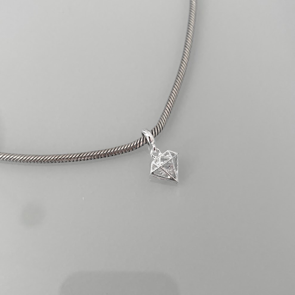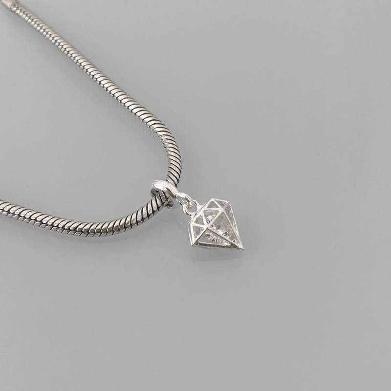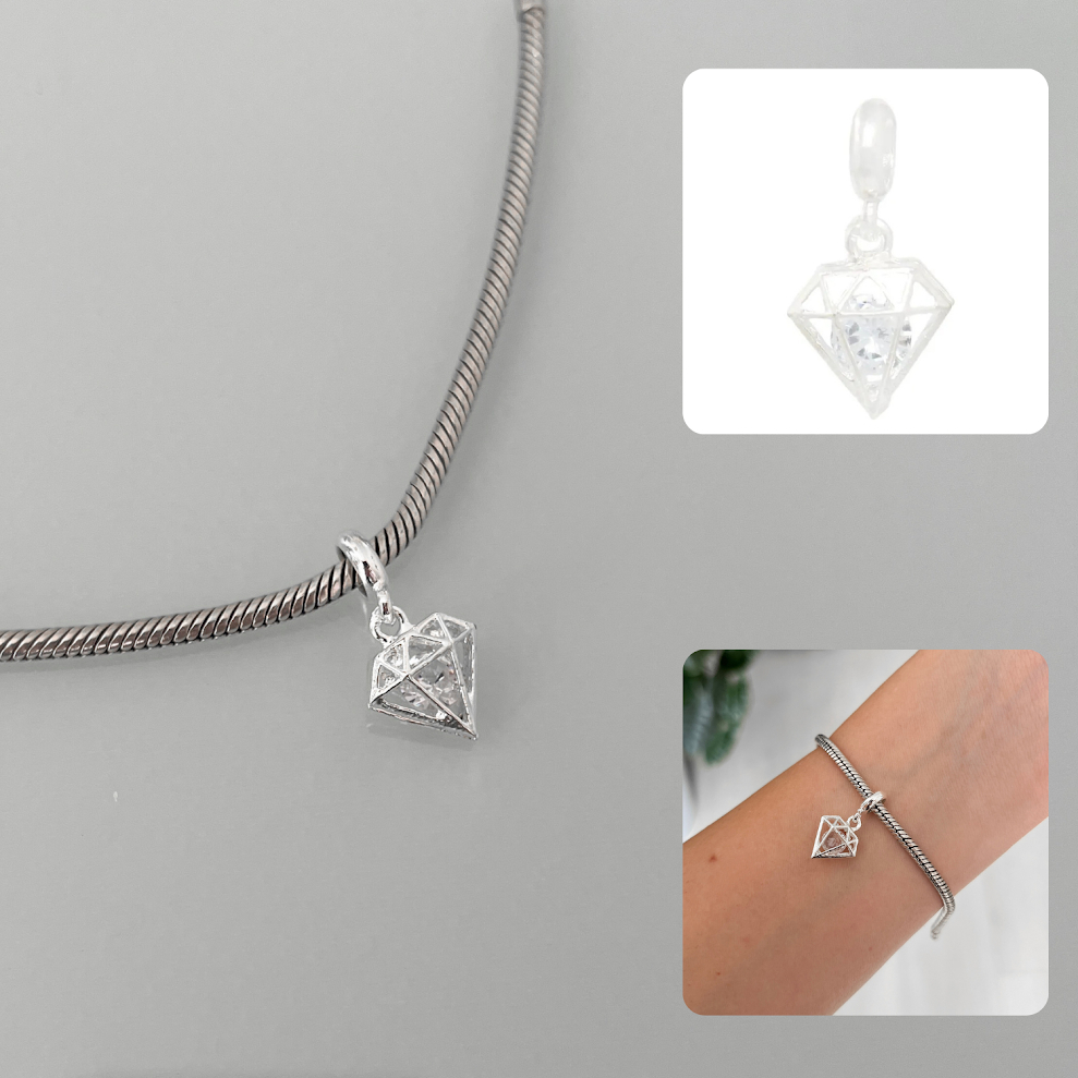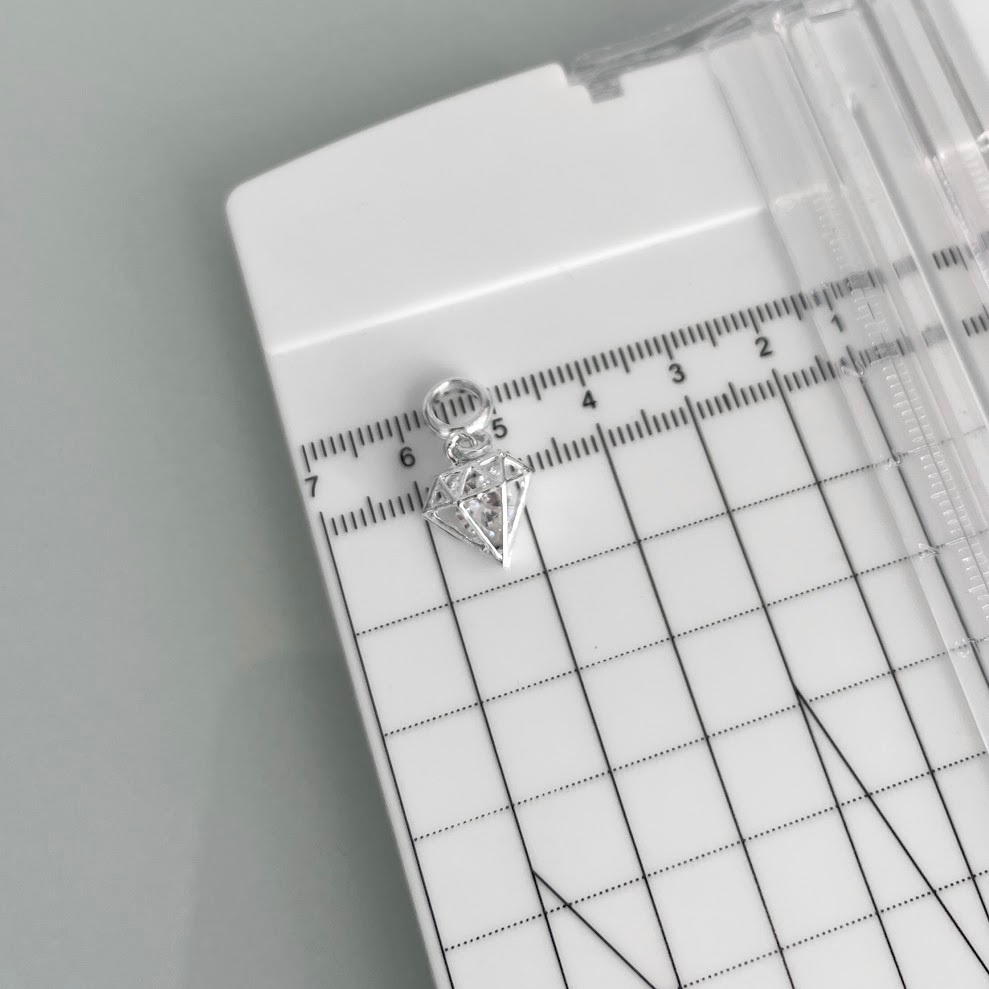 Berloque diamante strass ponto de luz banhado a prata