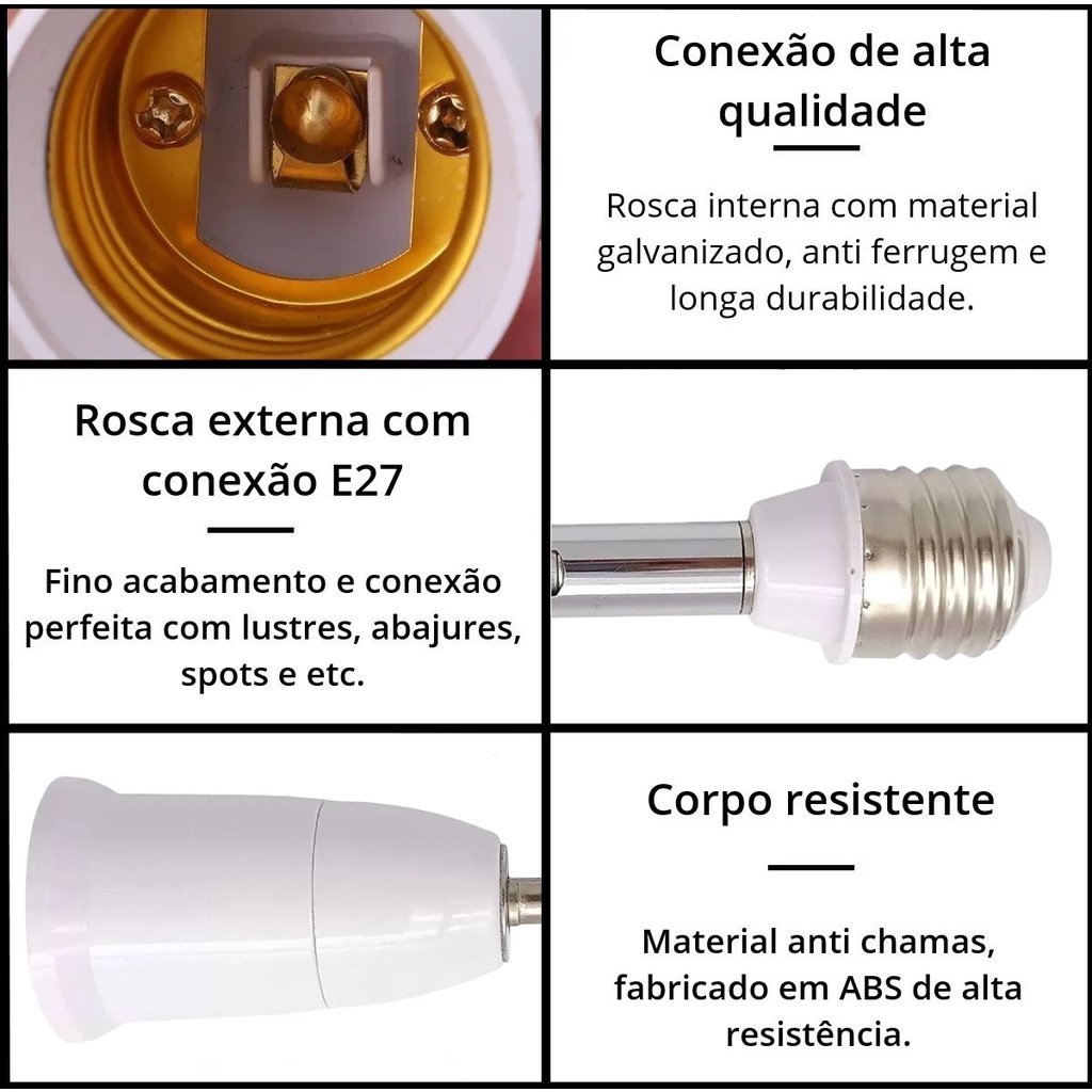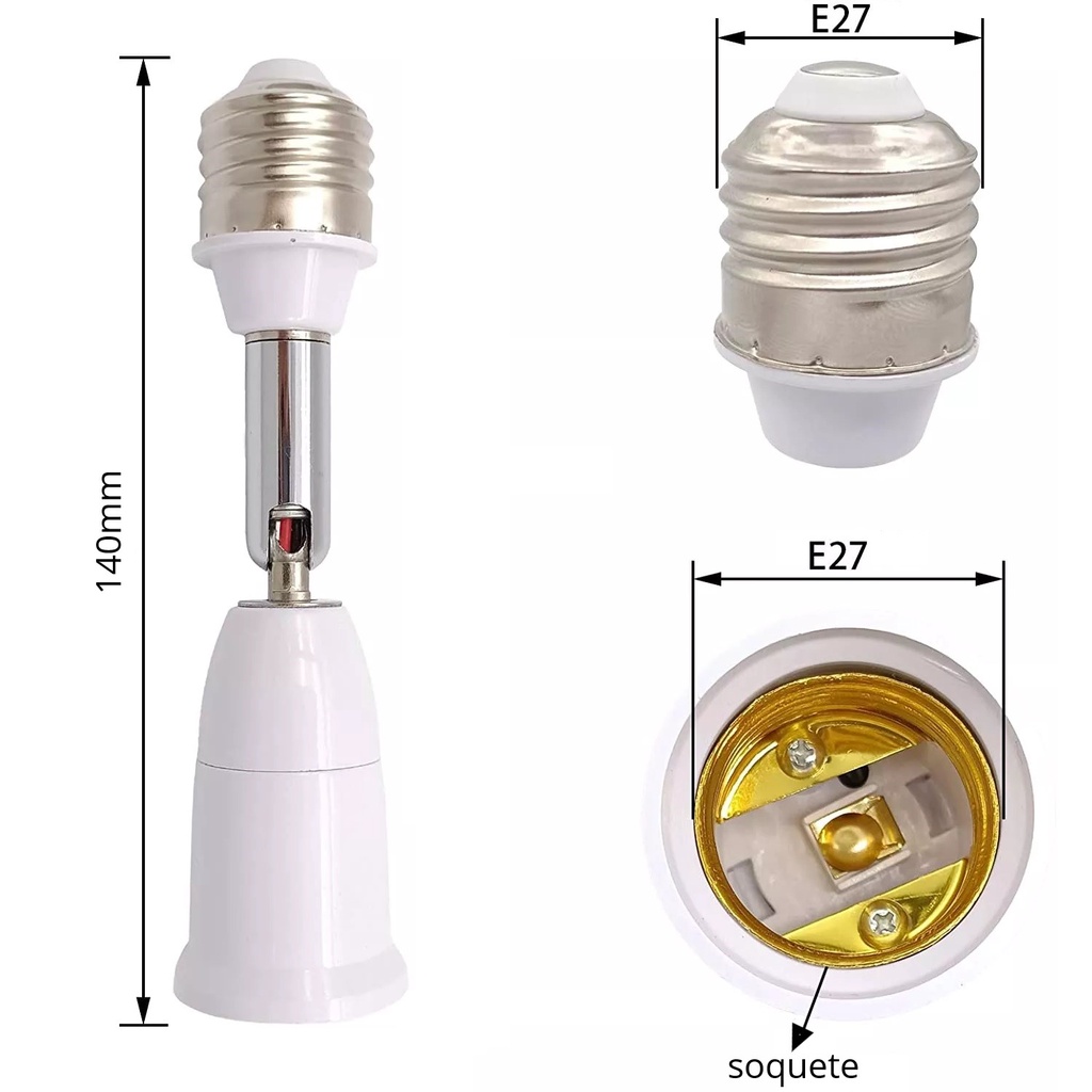 Prolongador Extensor Adaptador Bocal Articulado Soquete Lâmpada E27 - 140mm
