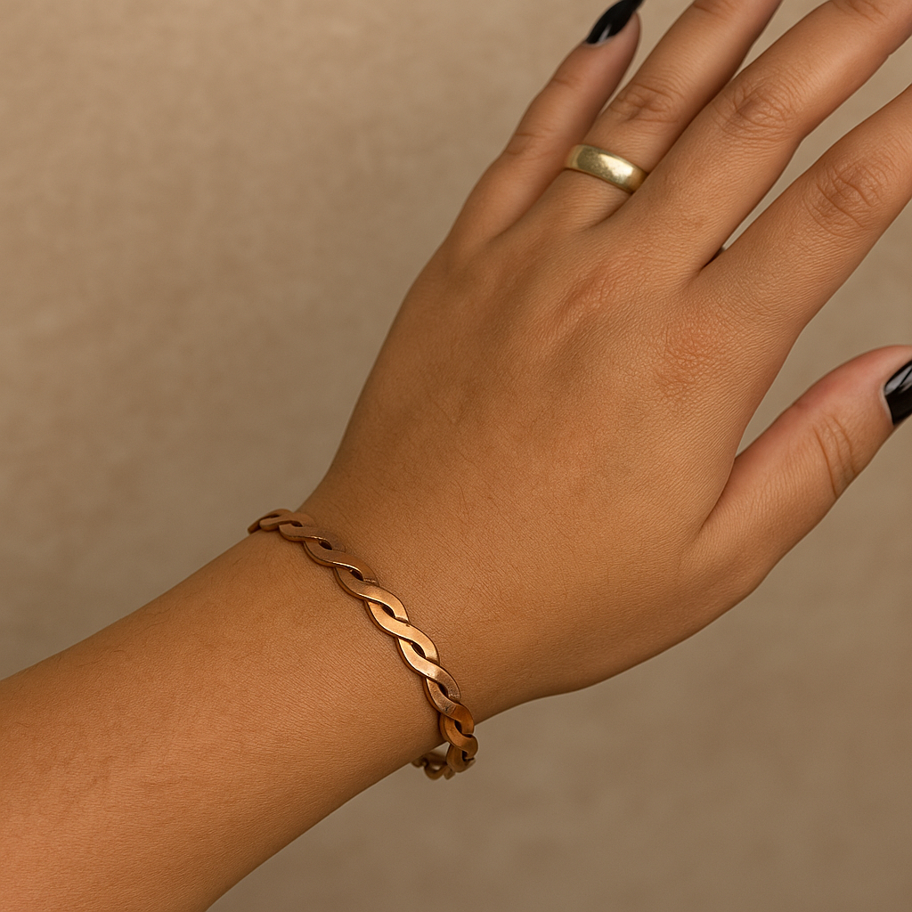 Pulseira Aura Trançada em Cobre Puro Ajustável (Terapêutico)