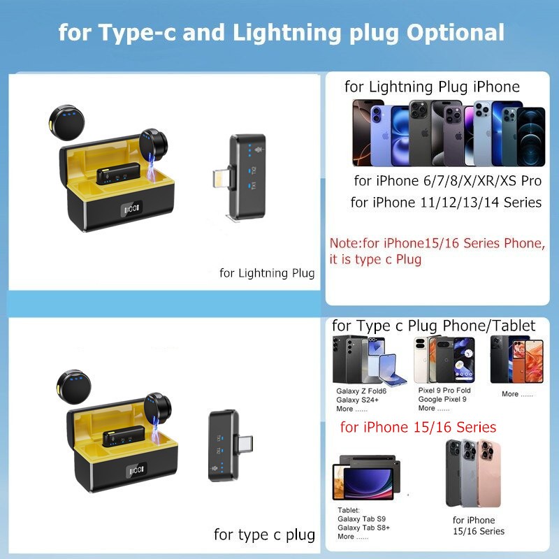 Microfone Lavalier Sem Fio M9 Para Apple iPhone Tipo C Telefone Ao Vivo Podcast Noise Cancelando Mini Lapel Mic