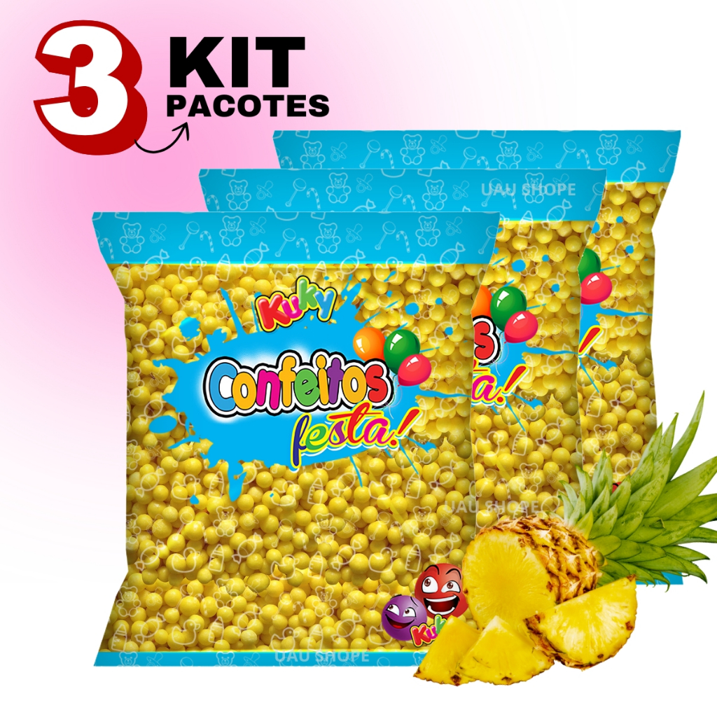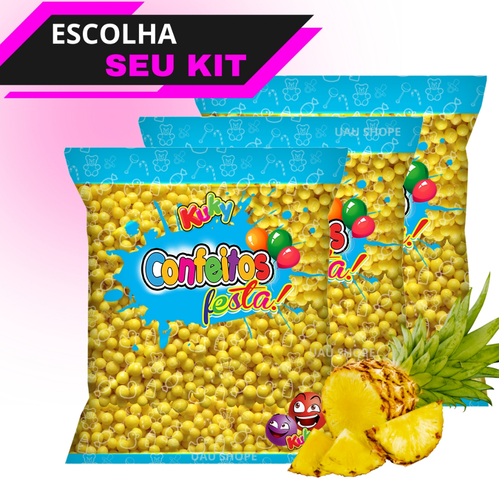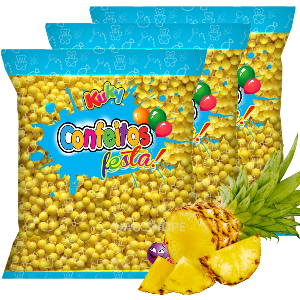 1/2/3 Confeito Bolinhas Festa 500gr Kuky - Abacaxi (amarelo)