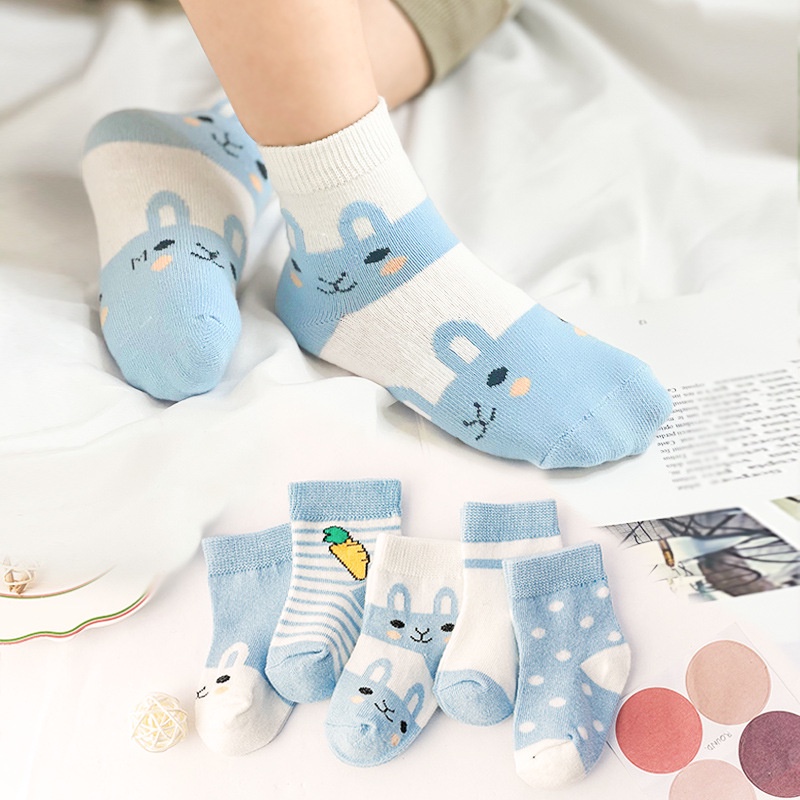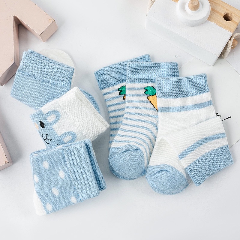 5 Pares / Conjunto Meia De Bebê Unissex De Malha Antiderrapante De Algodão Puro Com Desenho 0-6 Anos