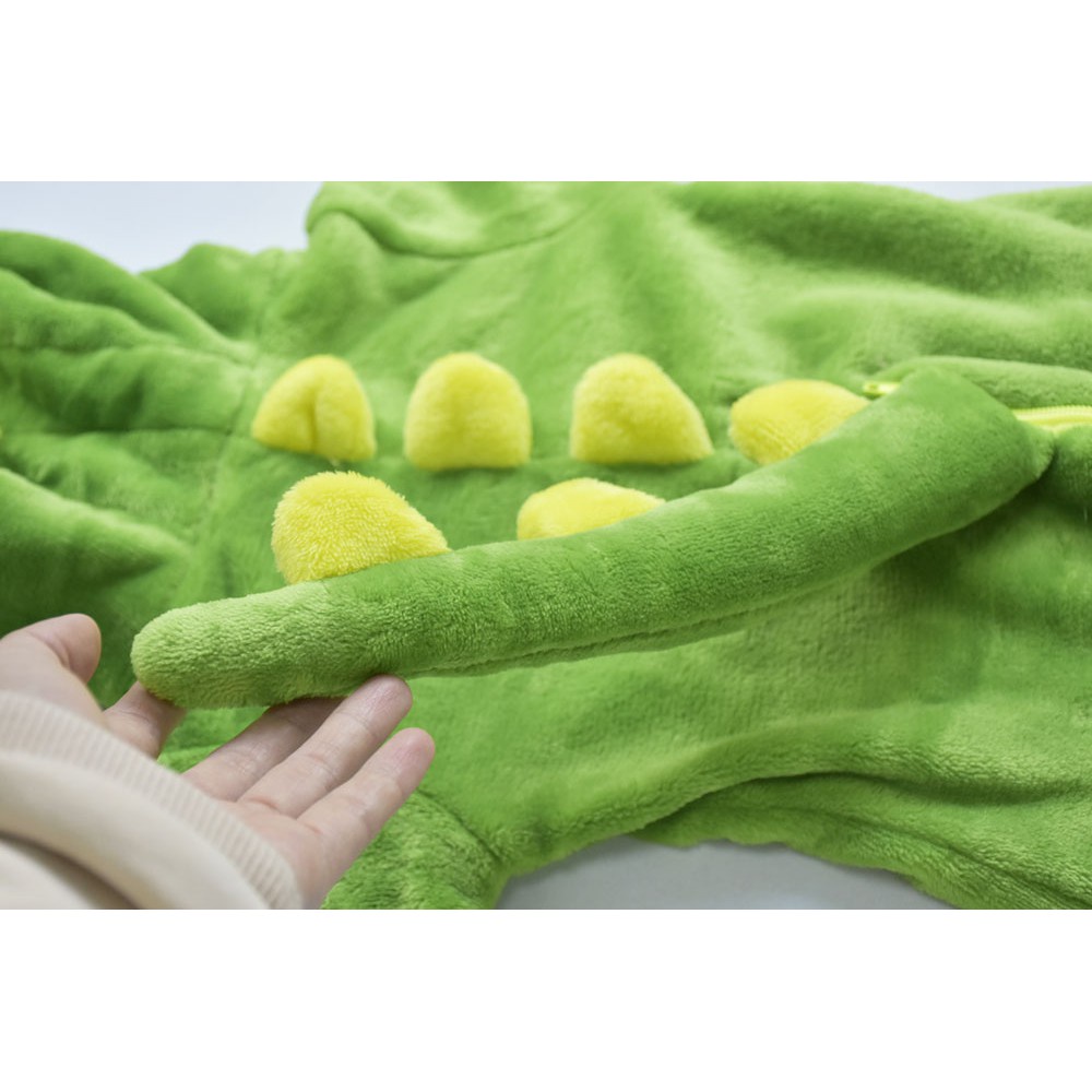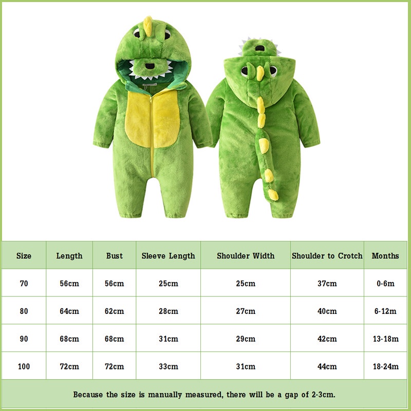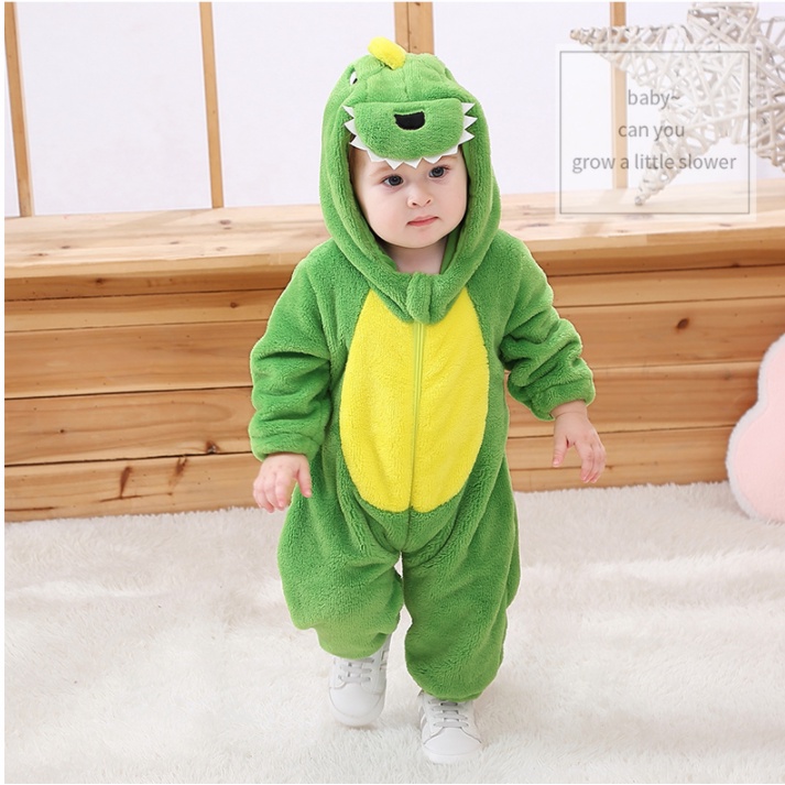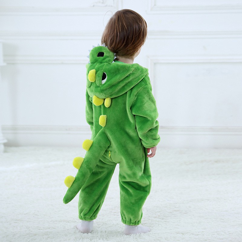 Bebê Bonitinho Romper One Piece Green Dinossauro Cartoon Roupa De Inverno Flanela Fato De Salto Macio