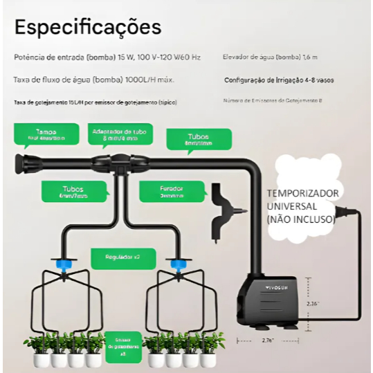 Kit de Irrigação Automática VIVOSUN FlexFeed 15W – 8 Saídas